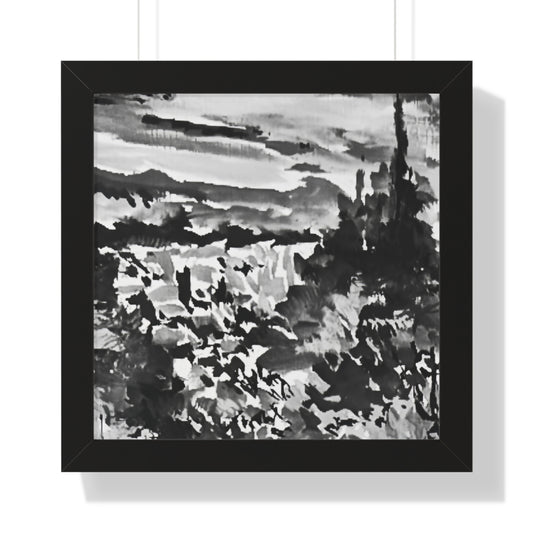 Tranquil forest dense tree gouache painting - Framed Vertical Poster