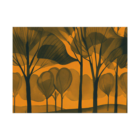 Orange Hue Trees Illustration in Tranquil Watercolor Matte - Textured Watercolor Matte Posters