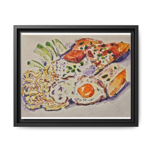 Beautiful food painting of mixed platter of eggs vegetables and assortments - Matte Canvas, Framed (Multi-color)