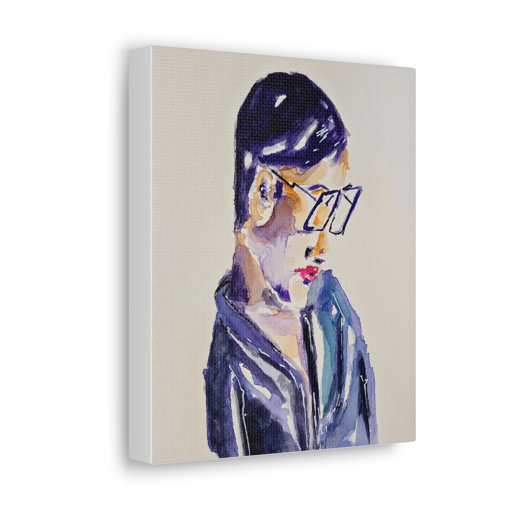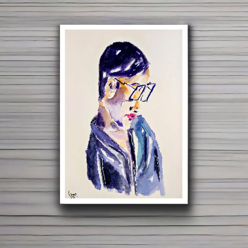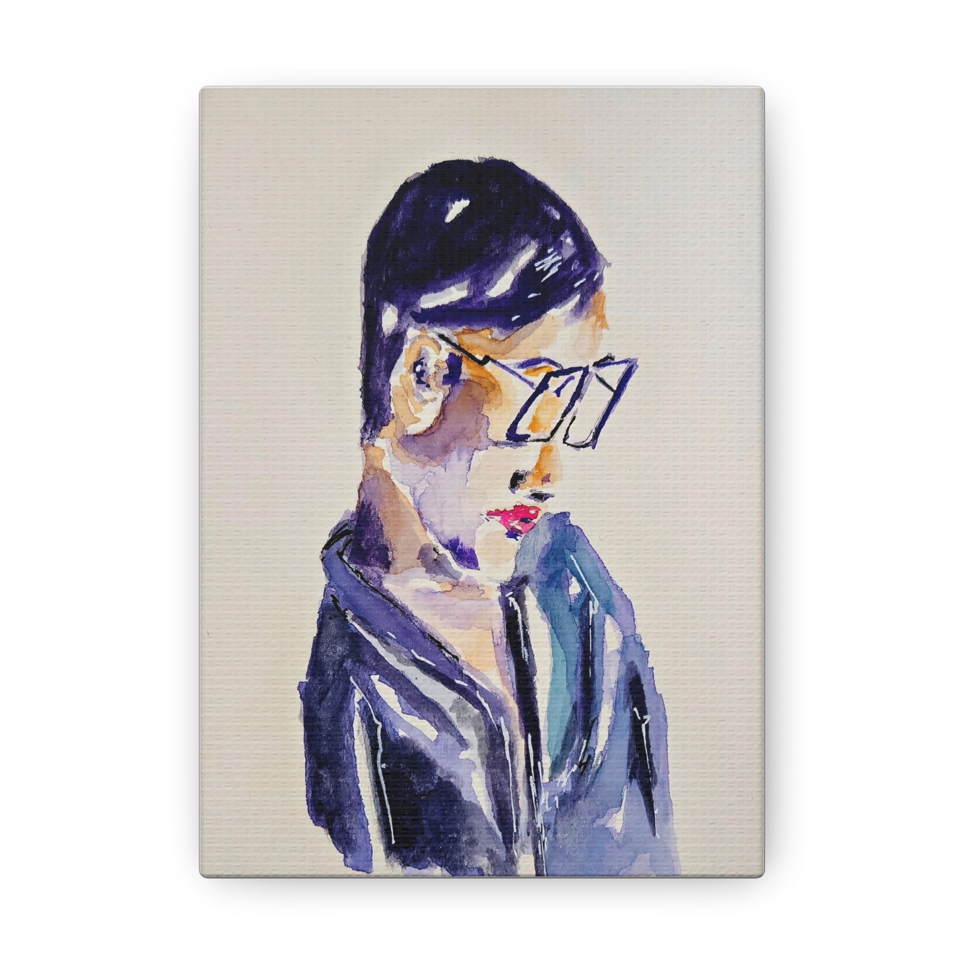 Deep Thinking Man Portrait in Glasses Handcrafted Watercolor Print - Canvas Wall Art