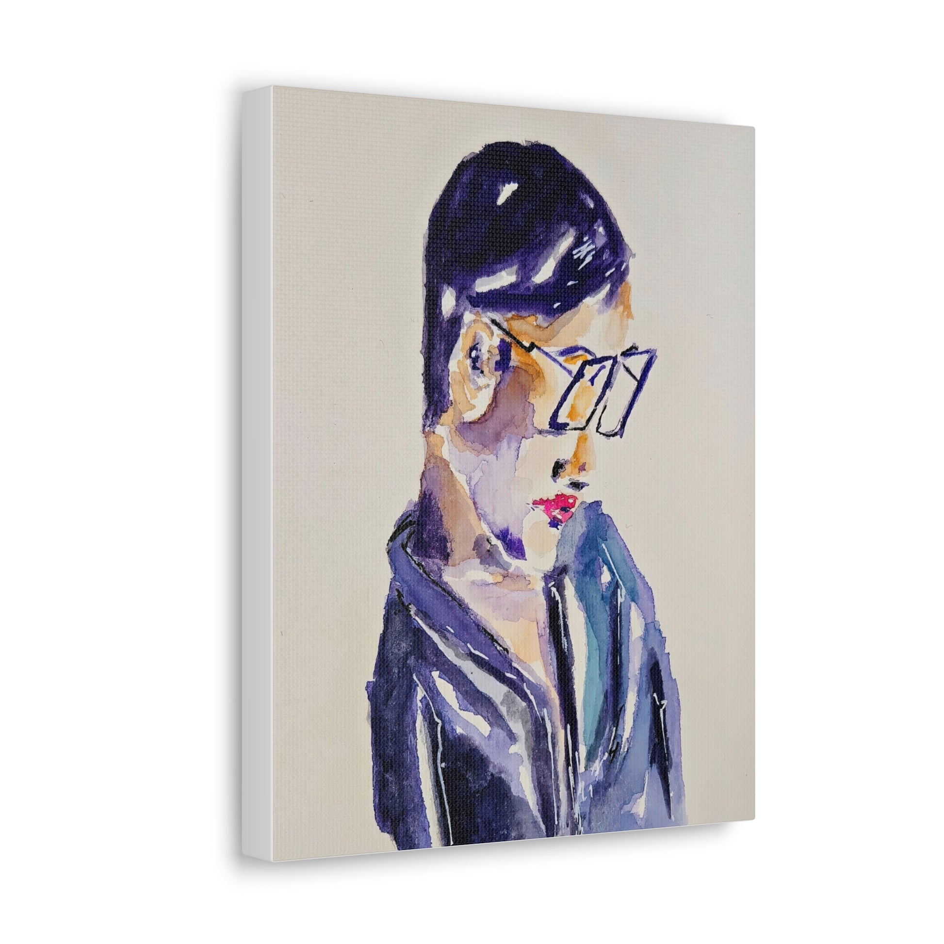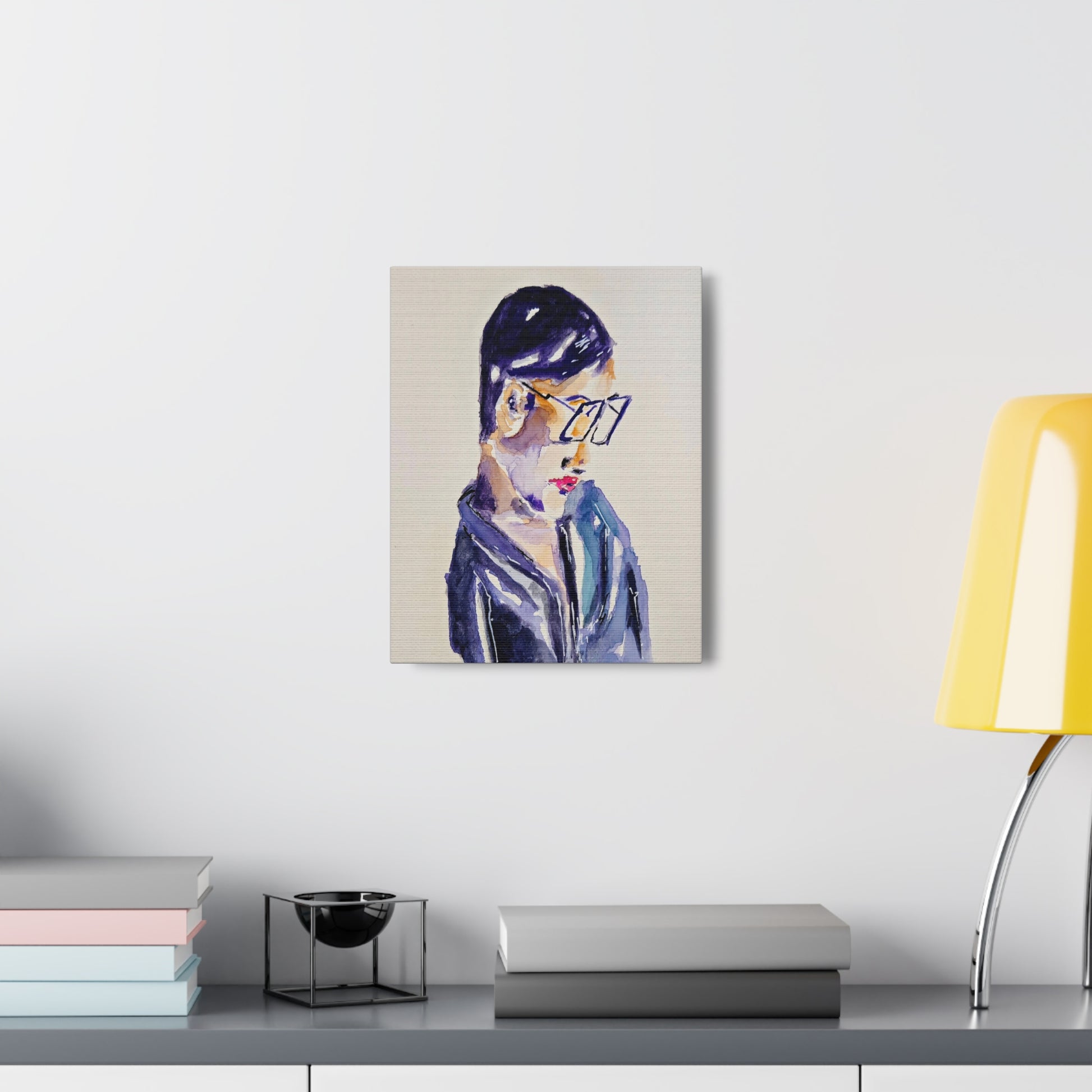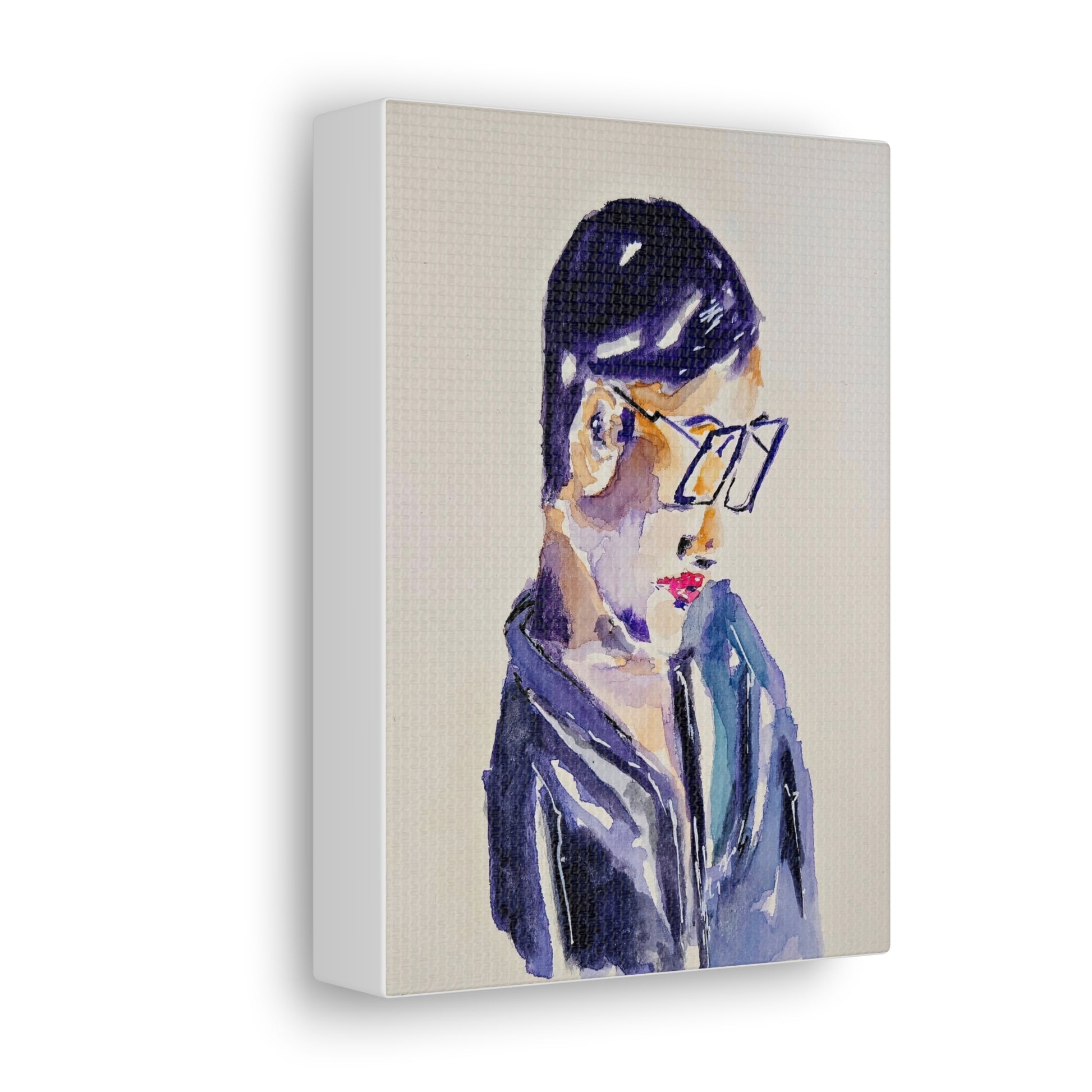 Deep Thinking Man Portrait in Glasses Handcrafted Watercolor Print - Canvas Wall Art
