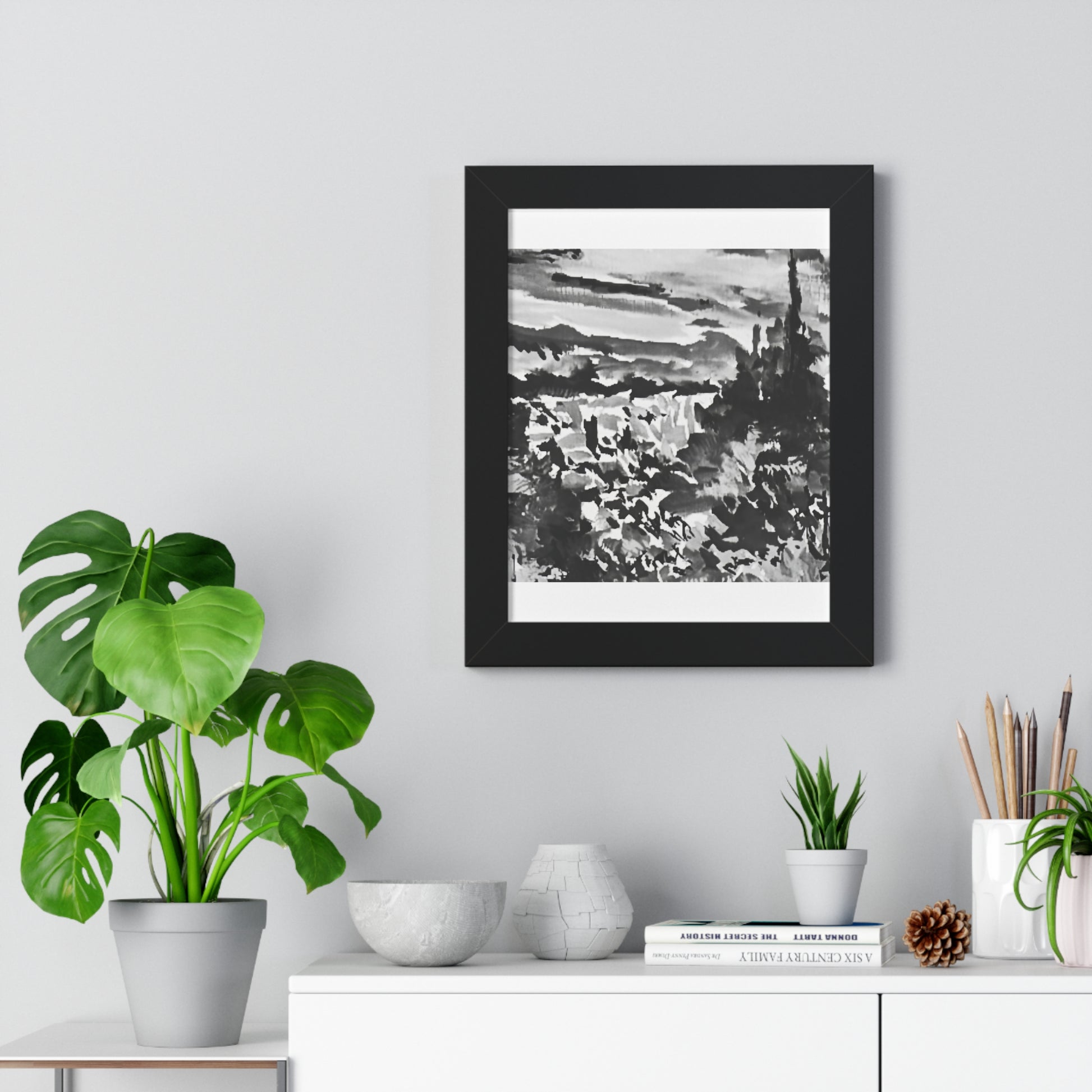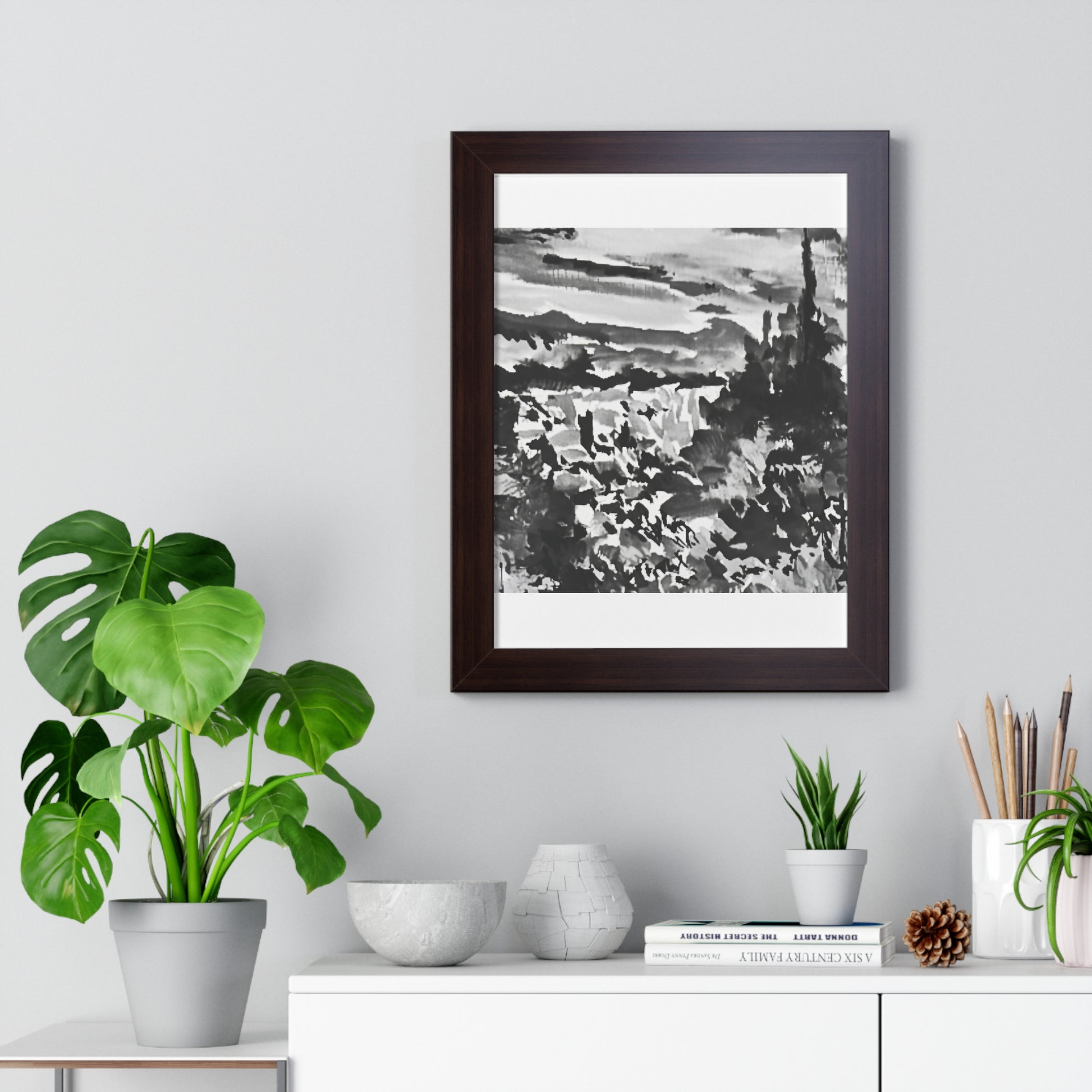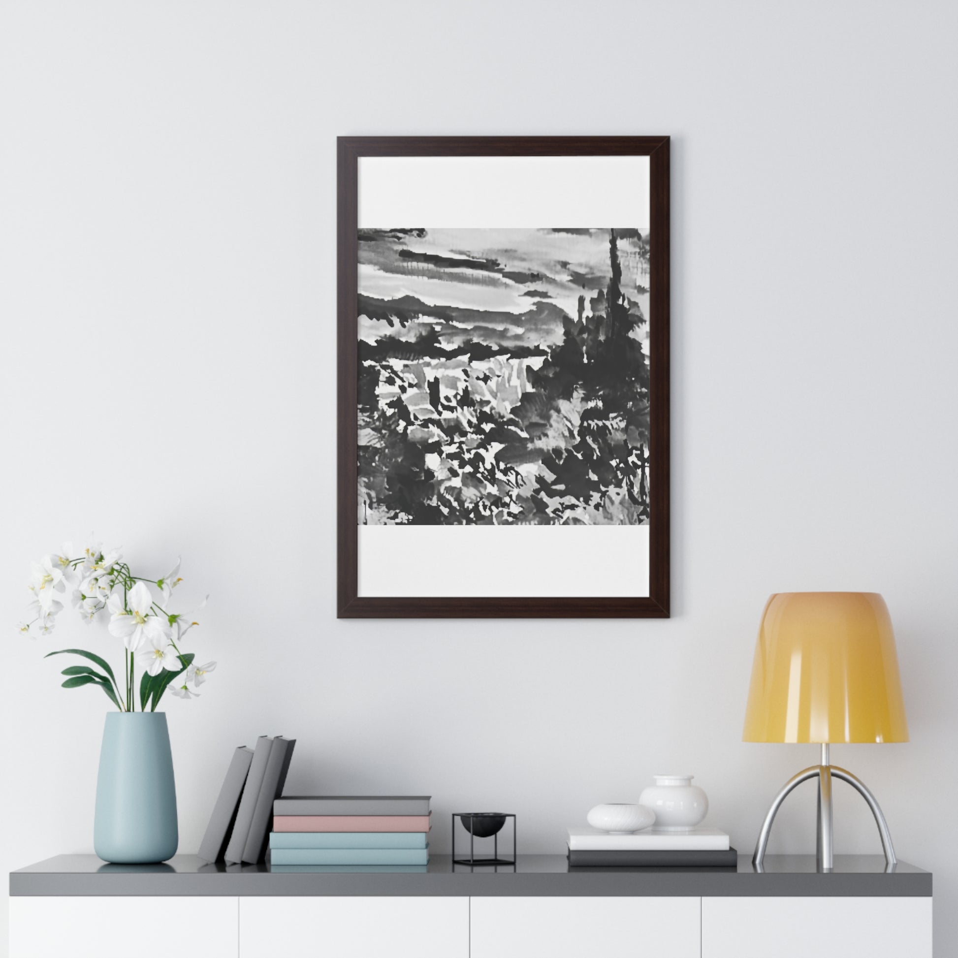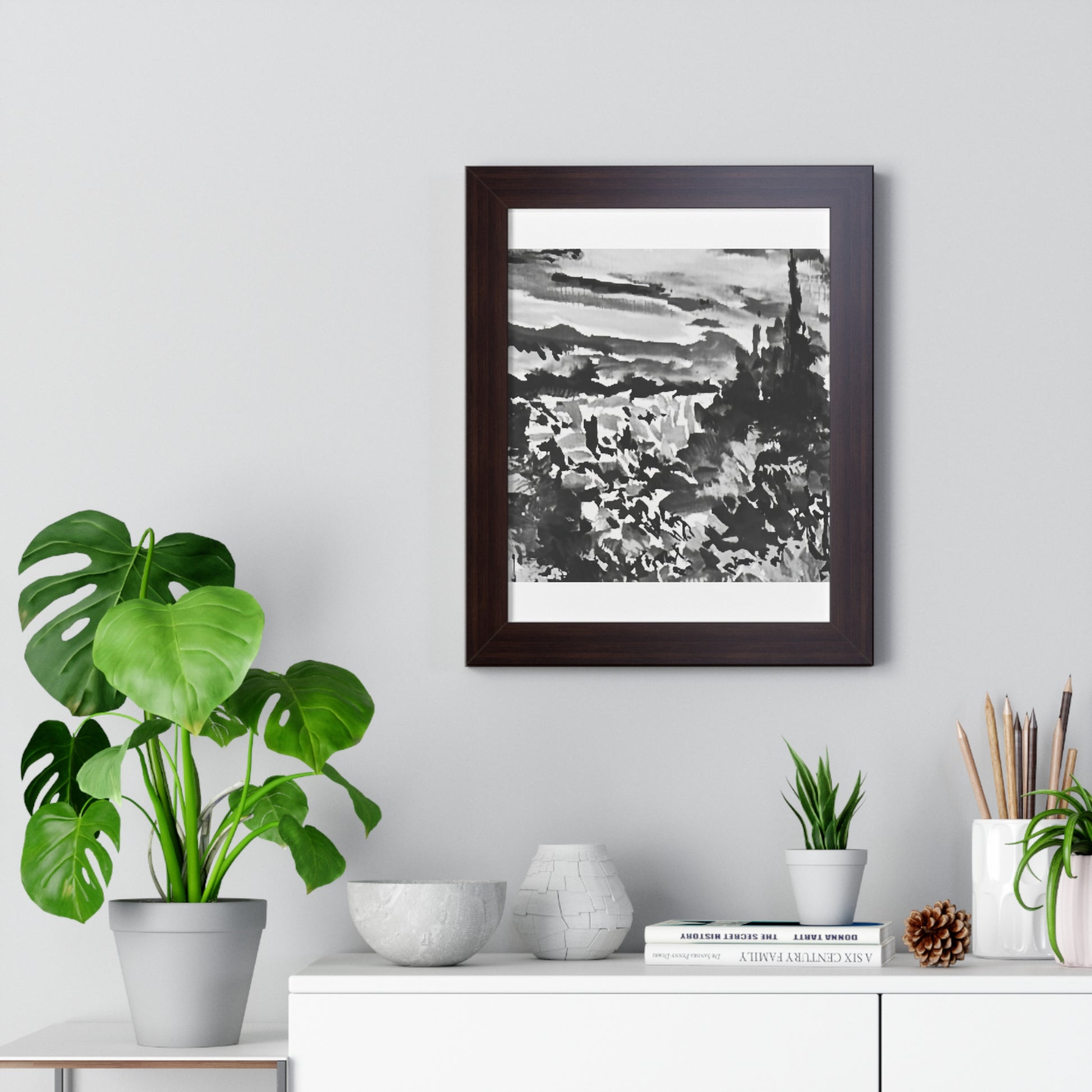 Tranquil forest dense tree gouache painting - Framed Vertical Poster