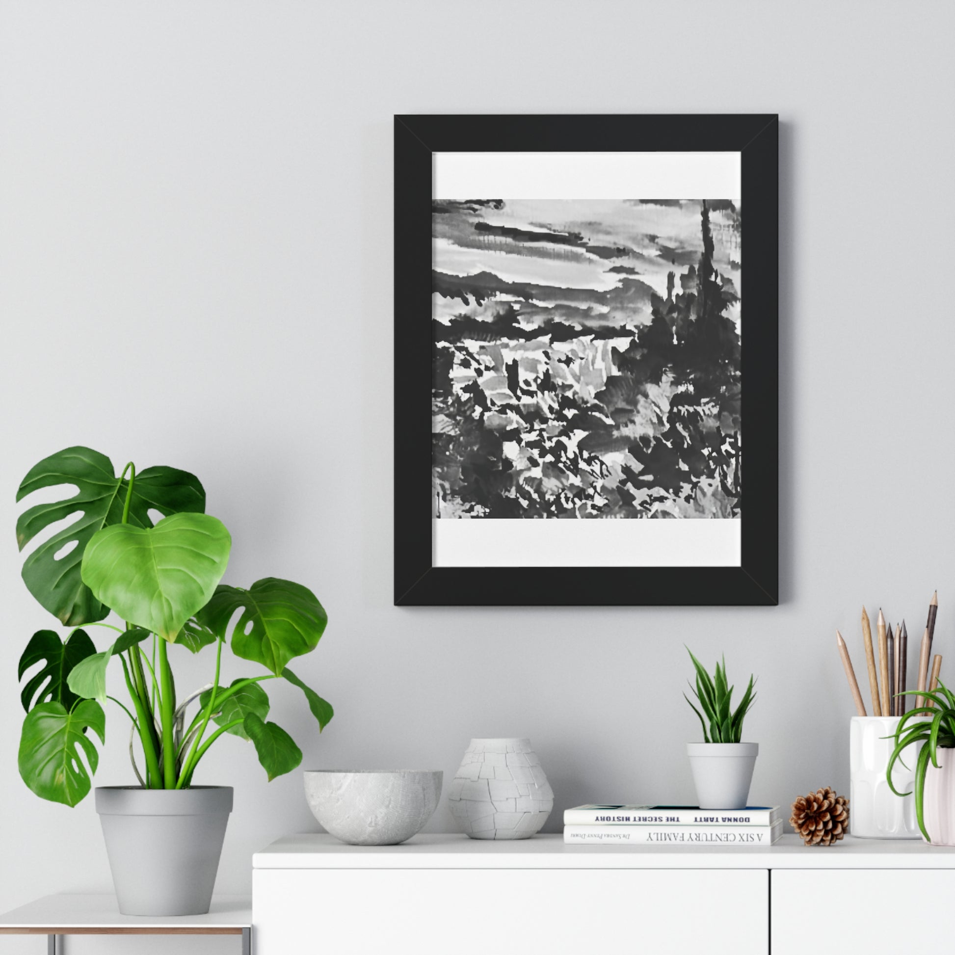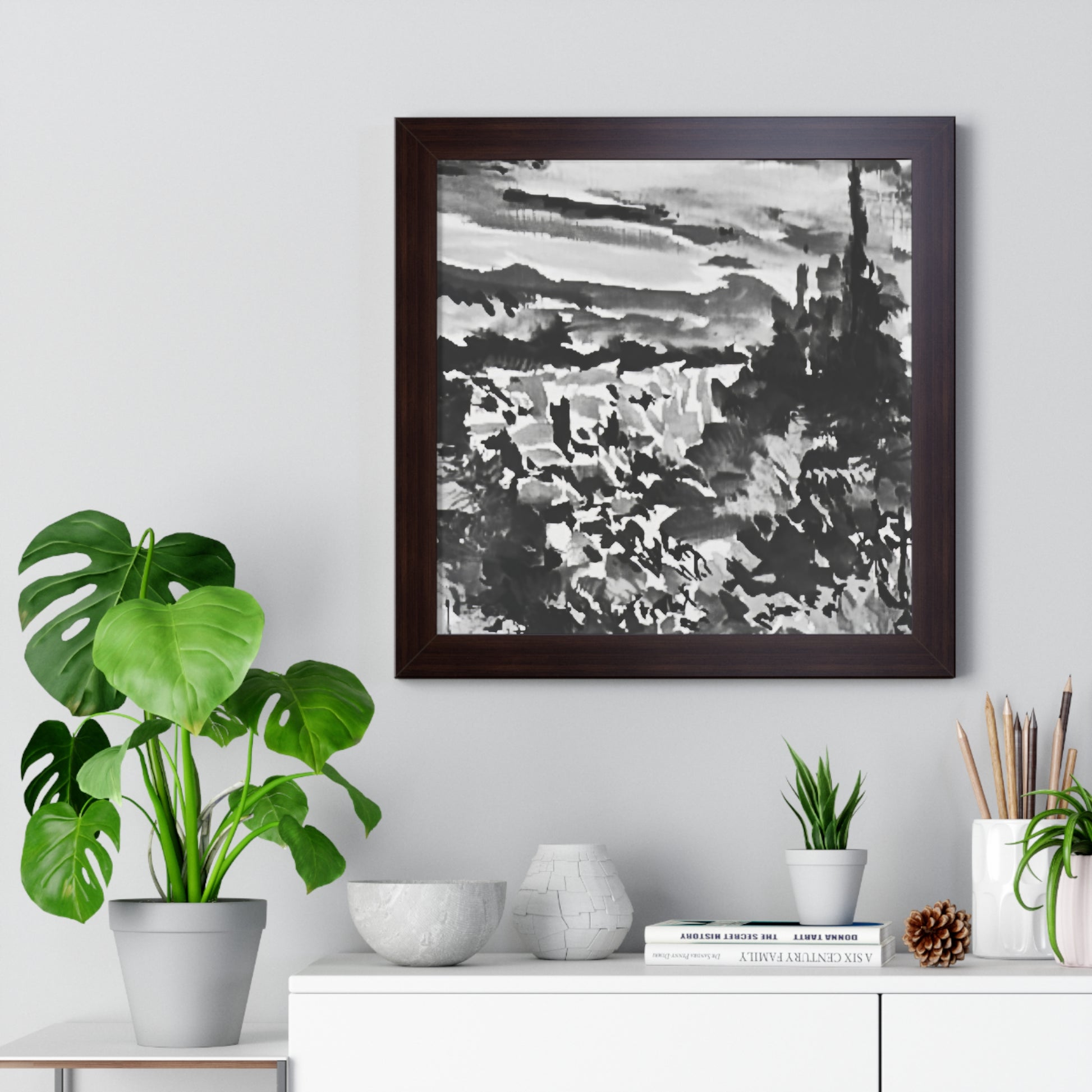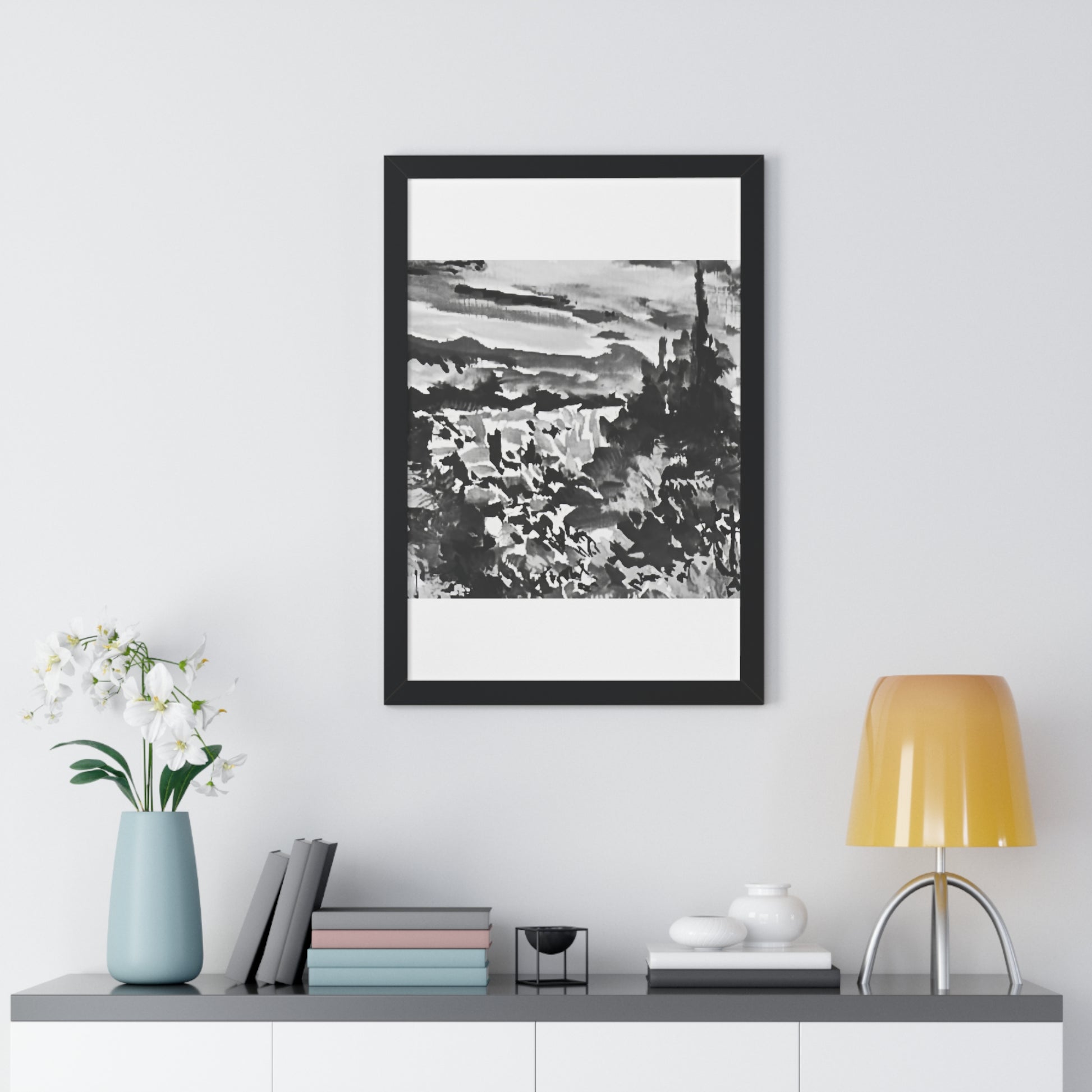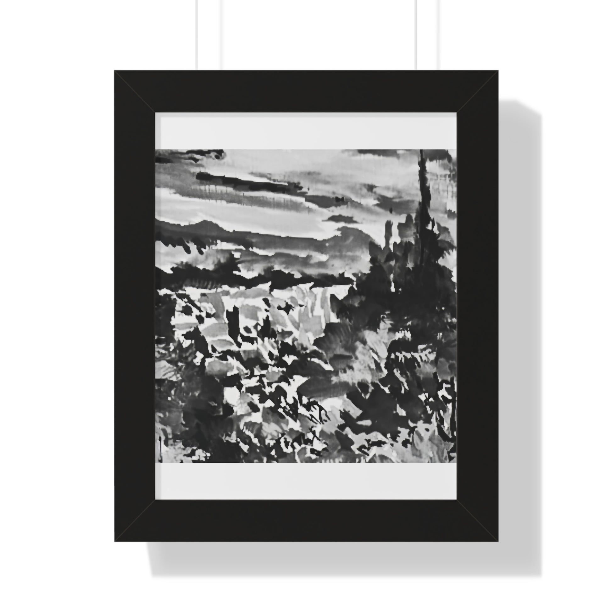 Tranquil forest dense tree gouache painting - Framed Vertical Poster