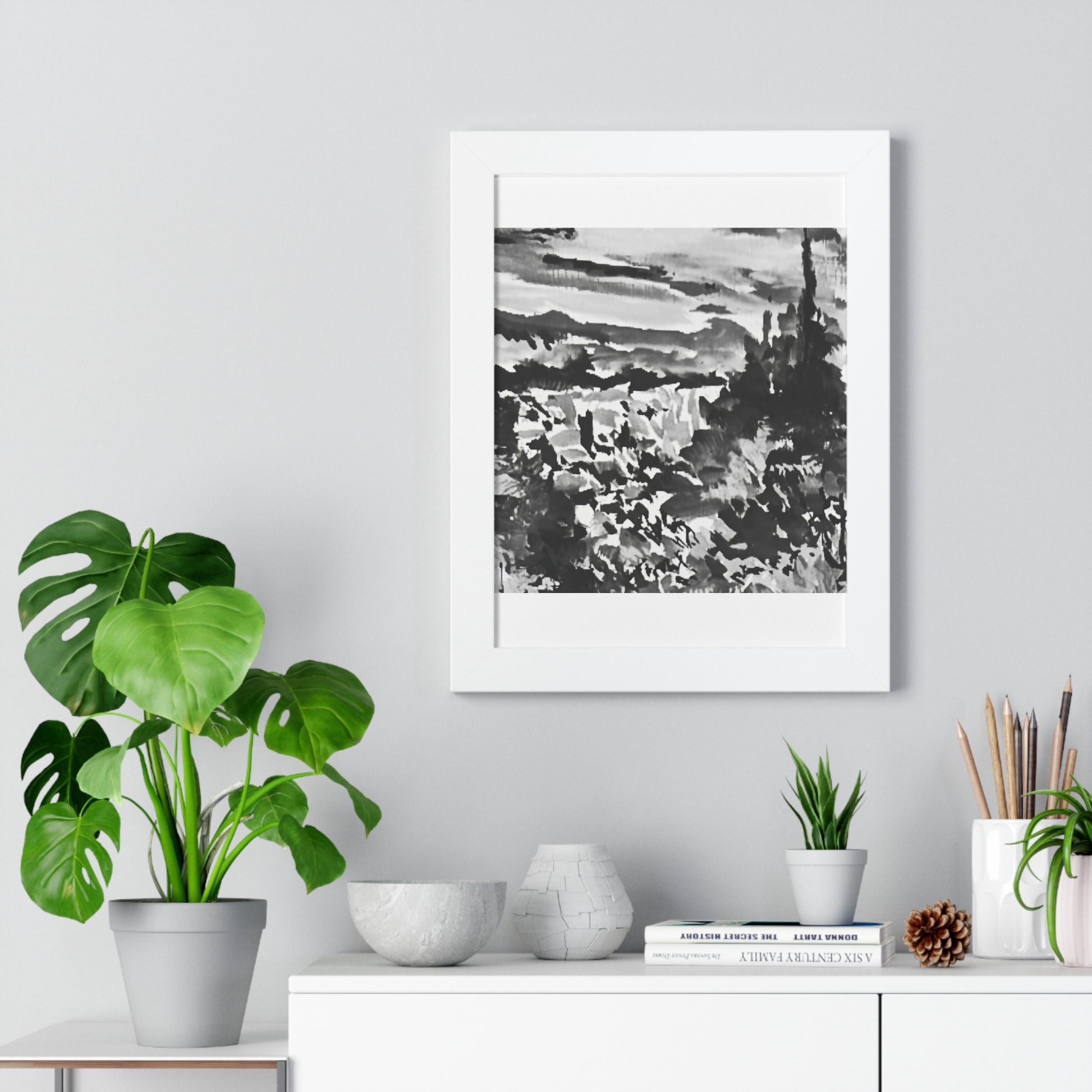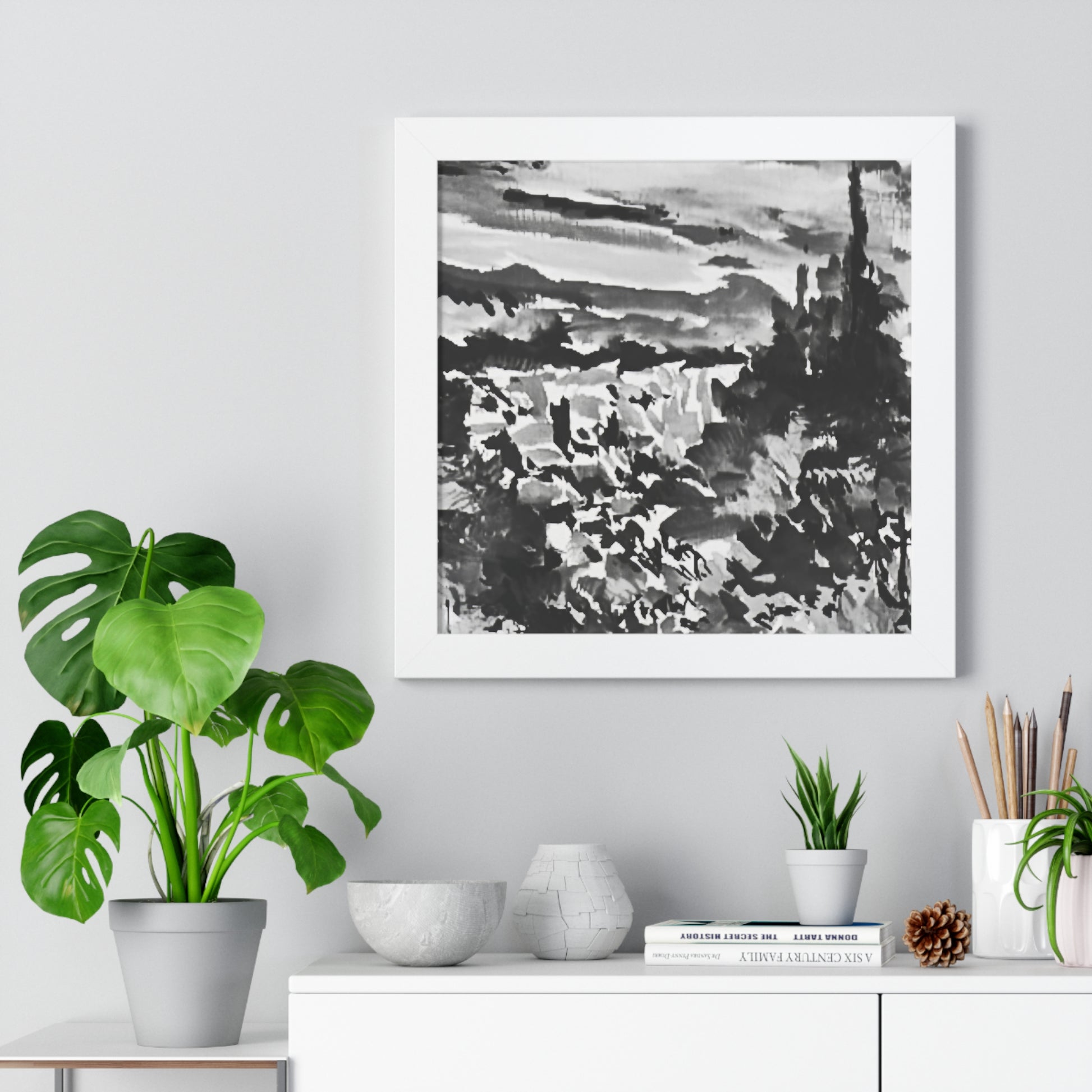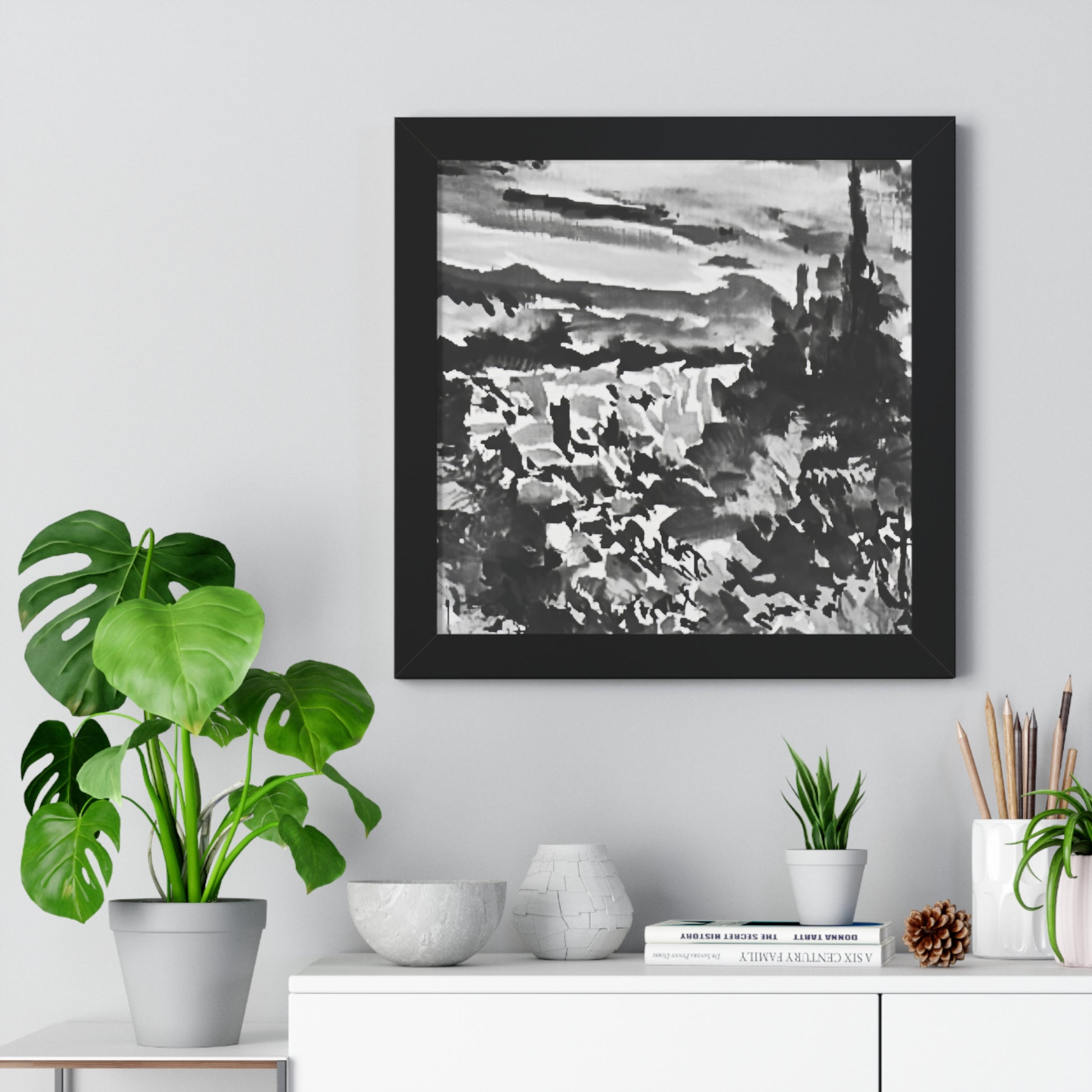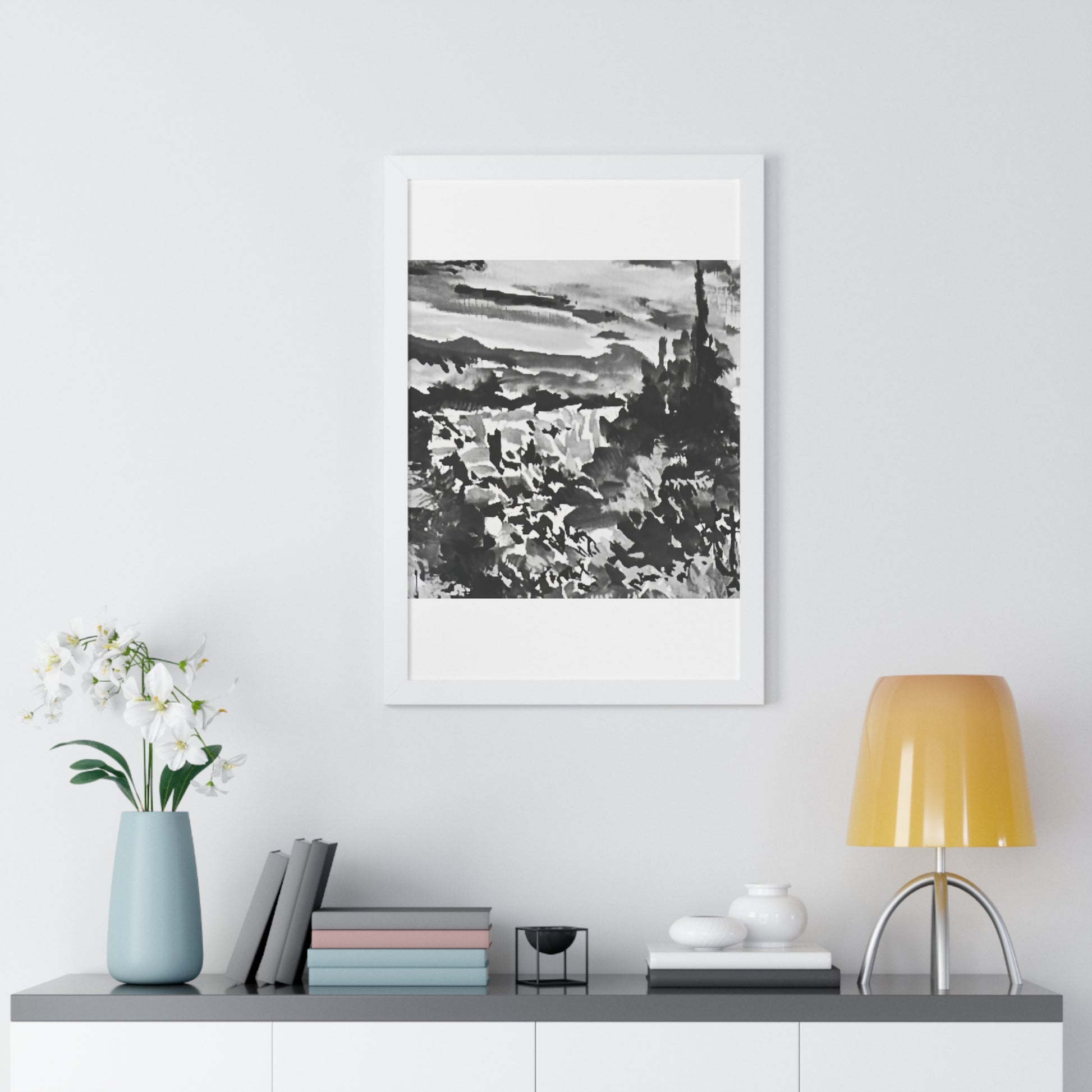 Tranquil forest dense tree gouache painting - Framed Vertical Poster