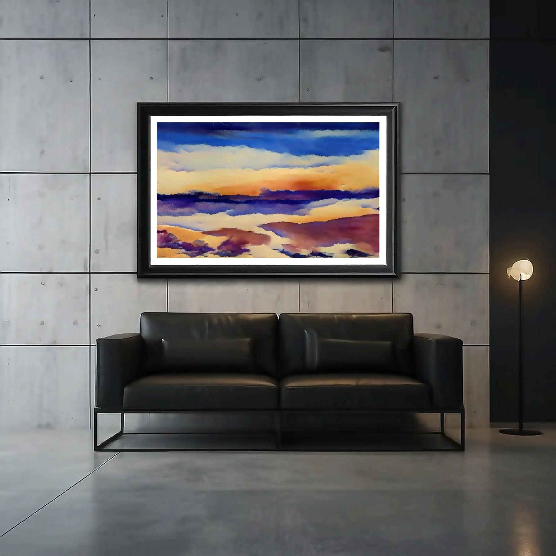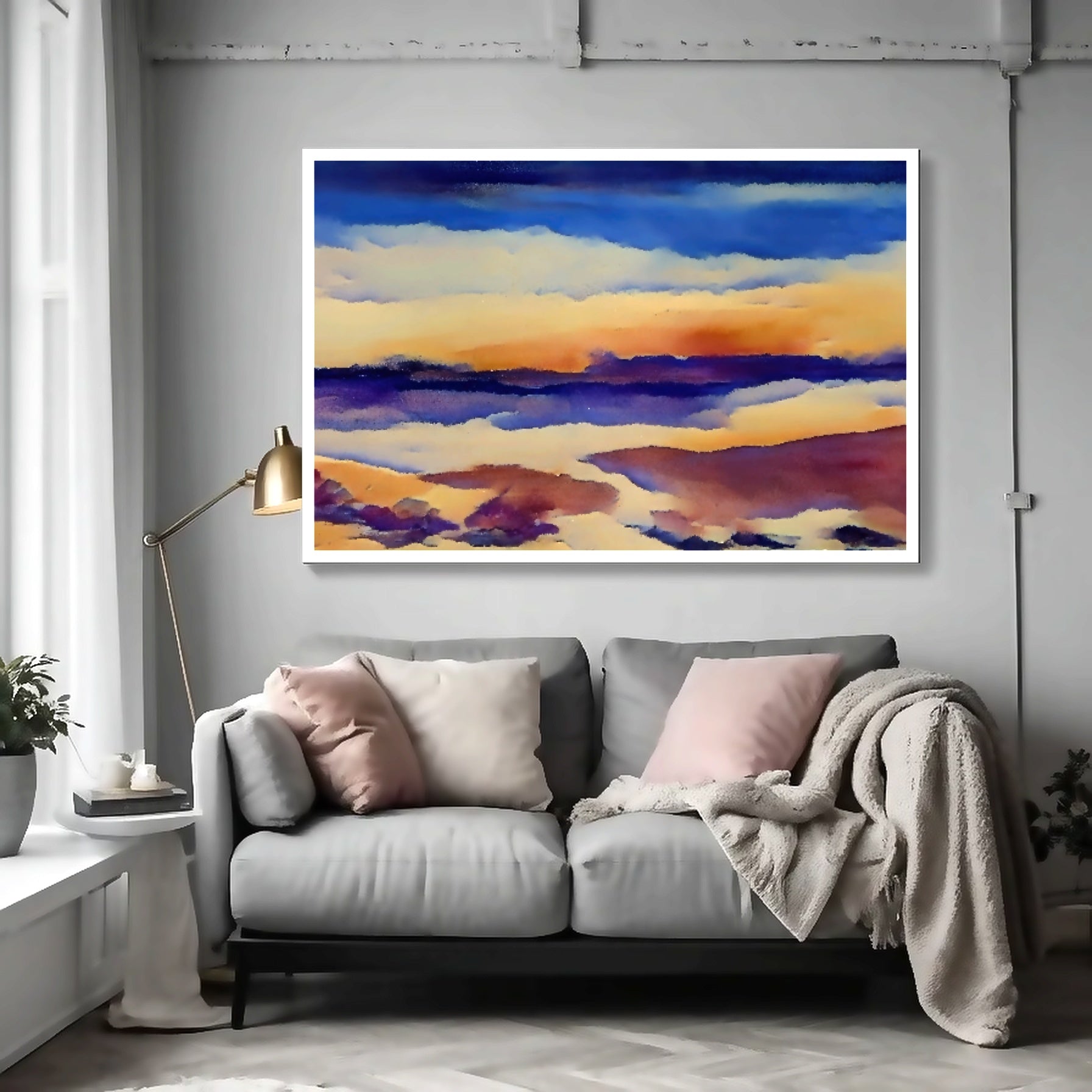 Scintillating Watercolor Sunset Sky Beach Vibes Wall Art | Living room, Bedroom, Interiors - Framed Poster