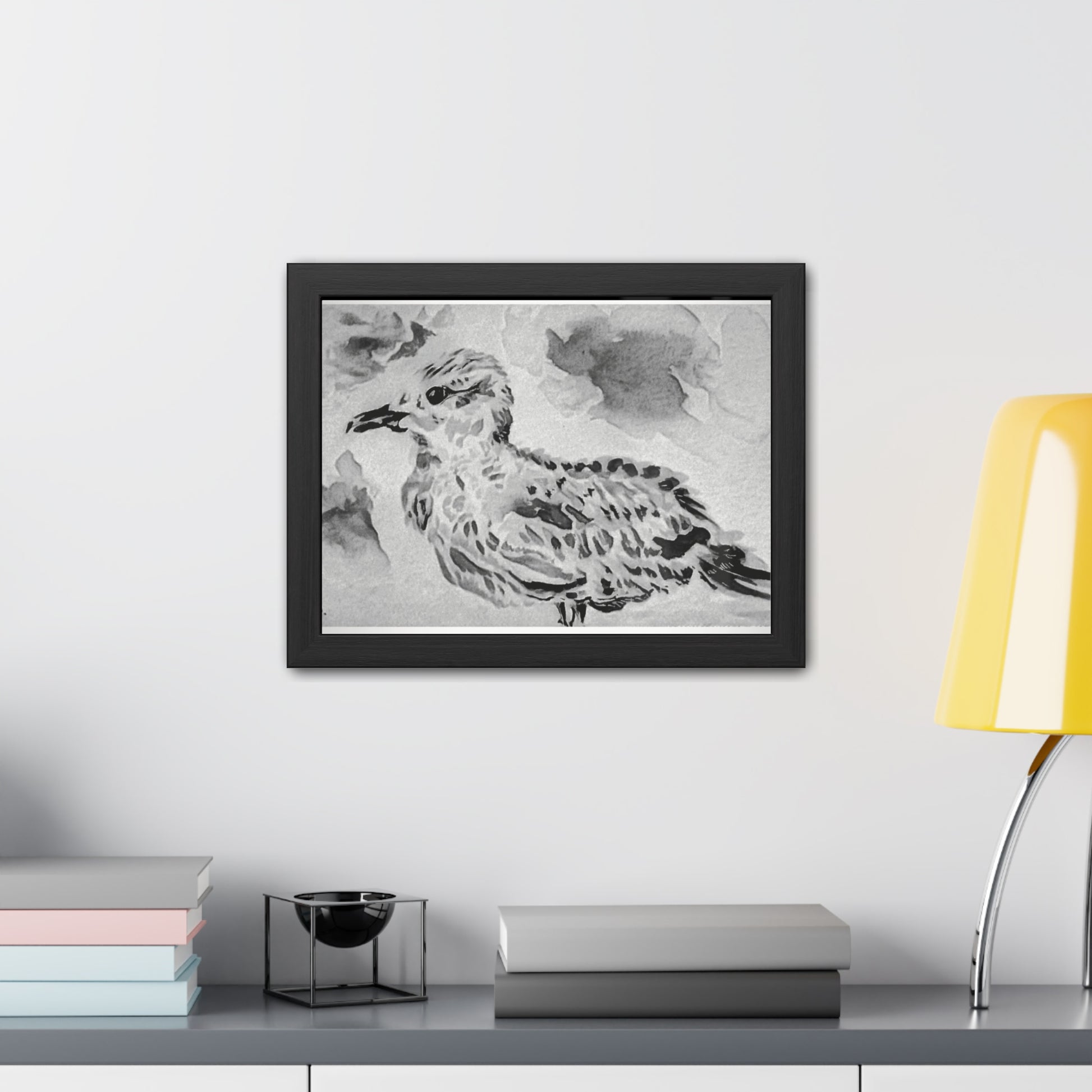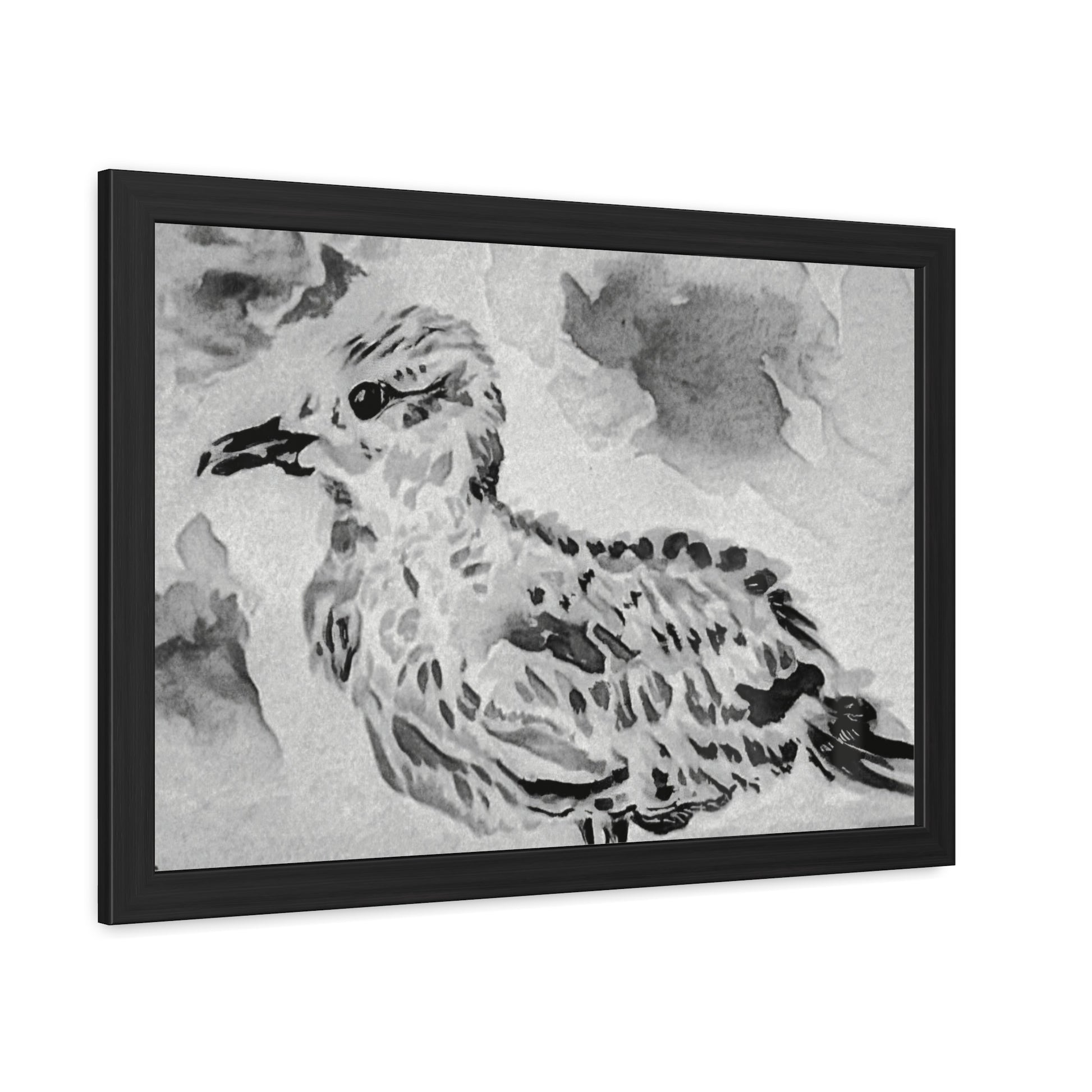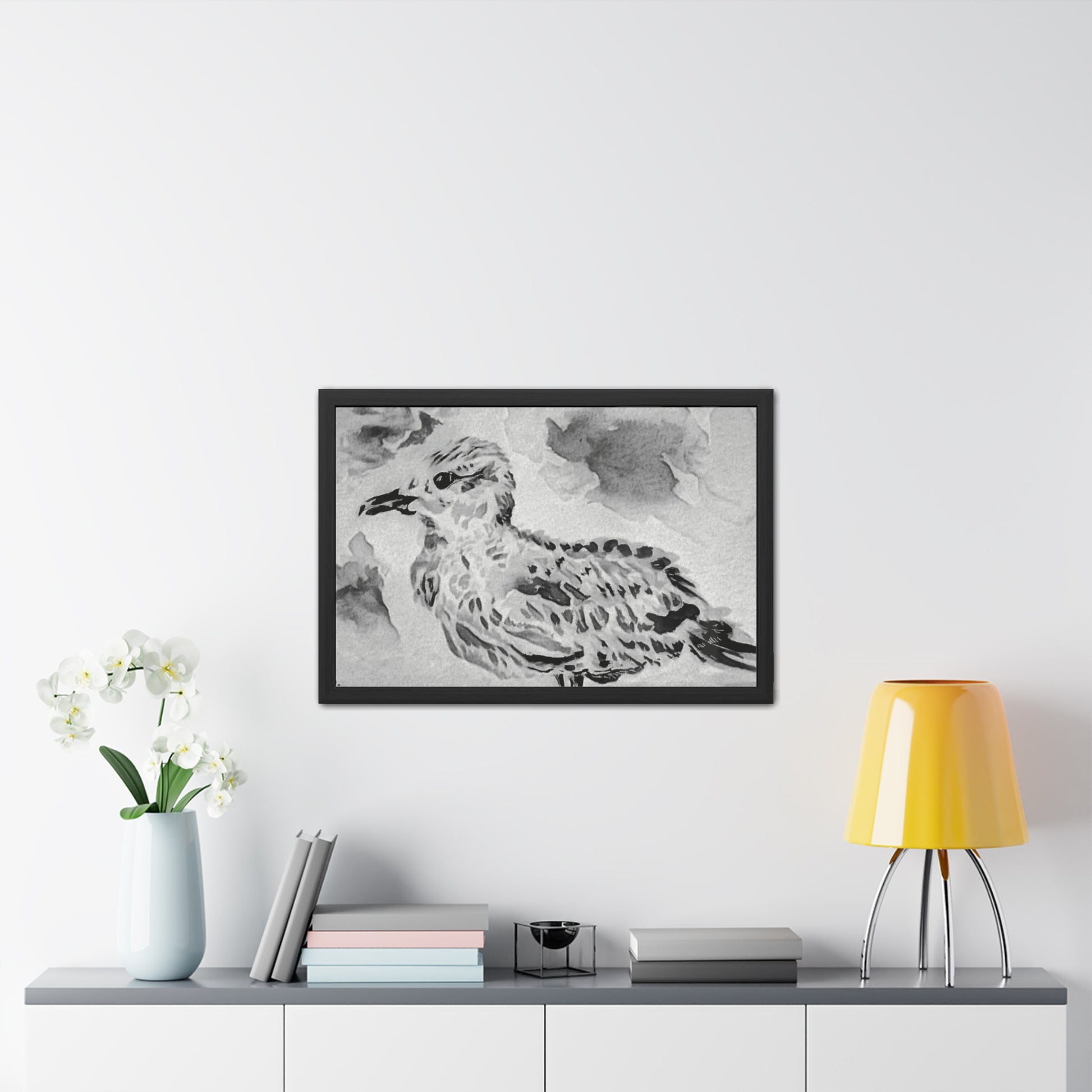 Elegant and serene watercolor painting of a sea gull in black and white, this Posters with Wooden Frame is a classy addition to any art lover's home decor. Perfect for those who appreciate original art forms and want to bring a touch of nature indoors. Ideal for art enthusiasts, nature lovers, and those who seek a tranquil atmosphere in their living spaces. Relevant for home decor, art appreciation, beach house decor, and coastal themed interiors.
