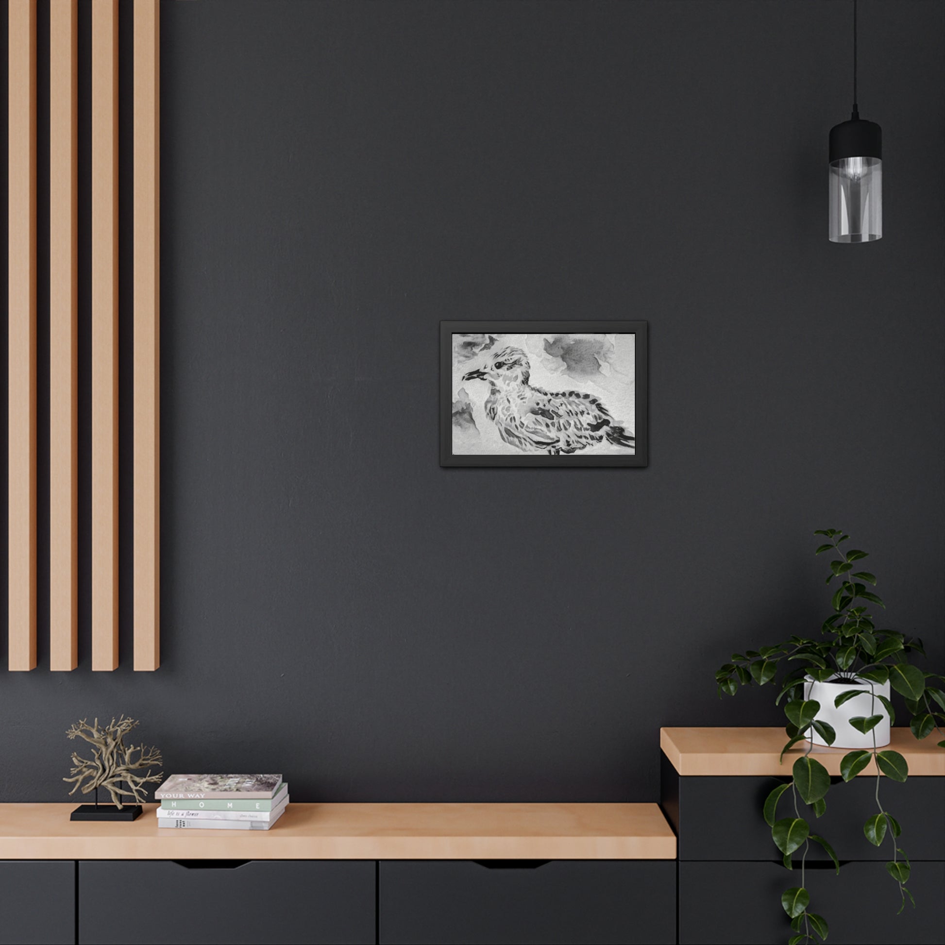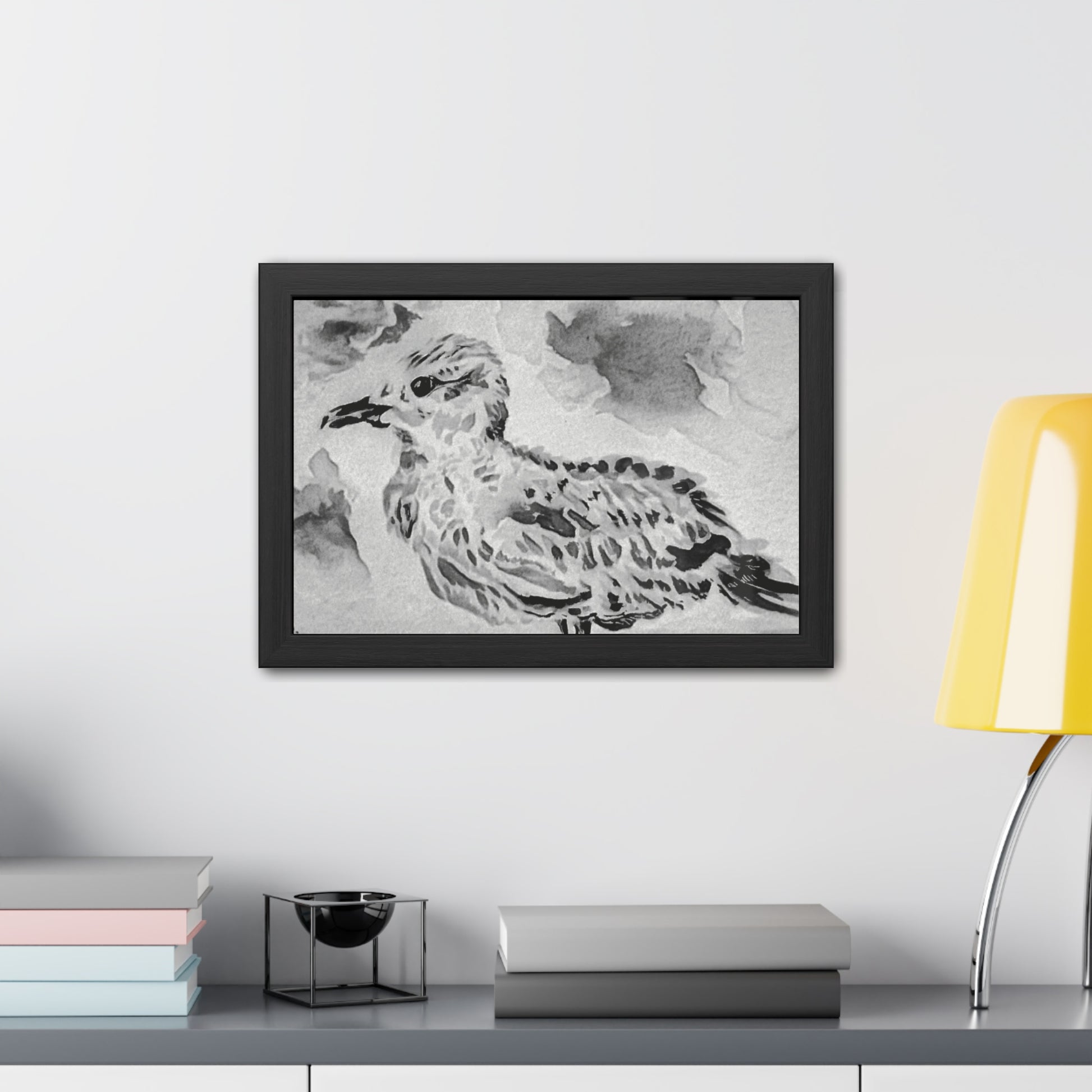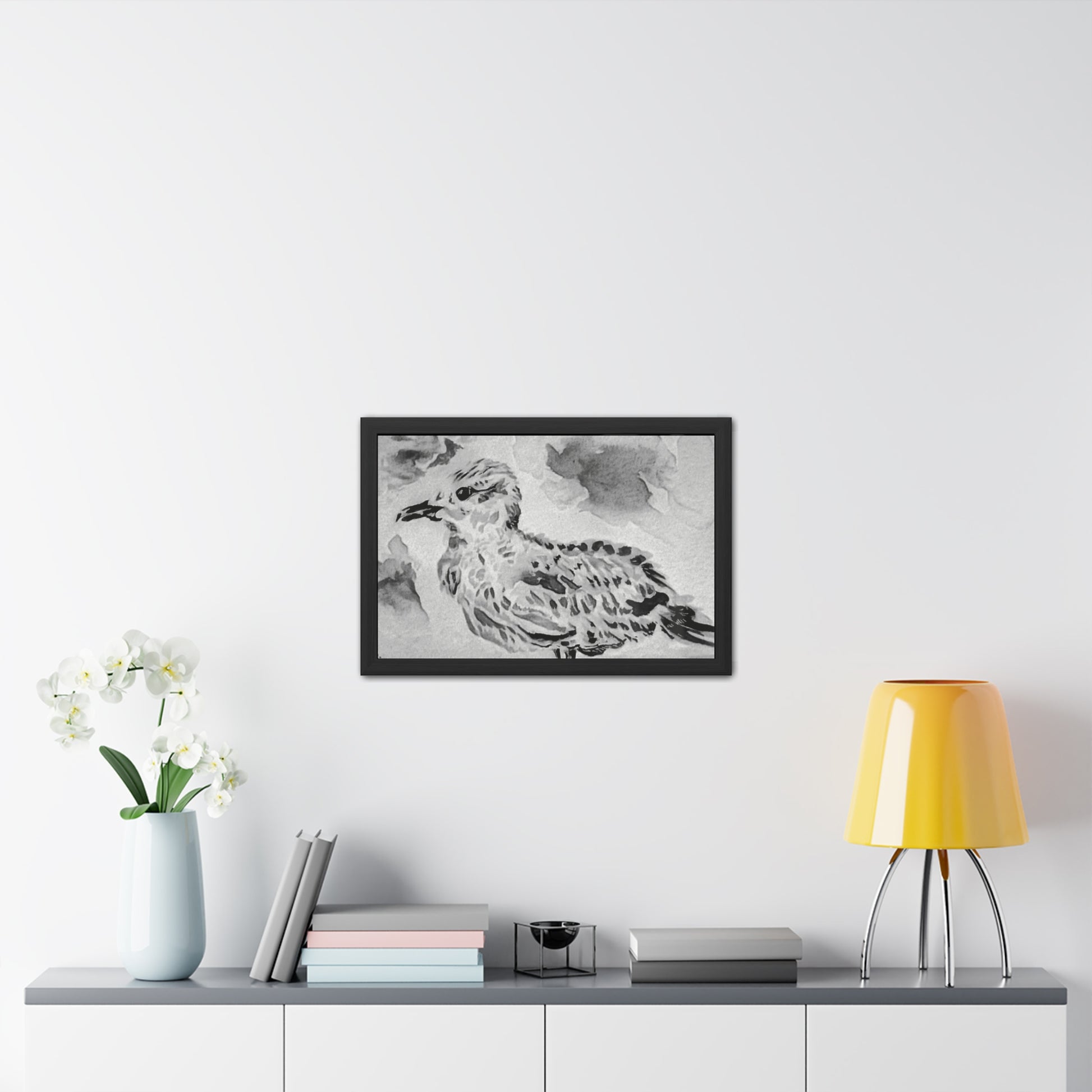 Elegant and serene watercolor painting of a sea gull in black and white, this Posters with Wooden Frame is a classy addition to any art lover's home decor. Perfect for those who appreciate original art forms and want to bring a touch of nature indoors. Ideal for art enthusiasts, nature lovers, and those who seek a tranquil atmosphere in their living spaces. Relevant for home decor, art appreciation, beach house decor, and coastal themed interiors.