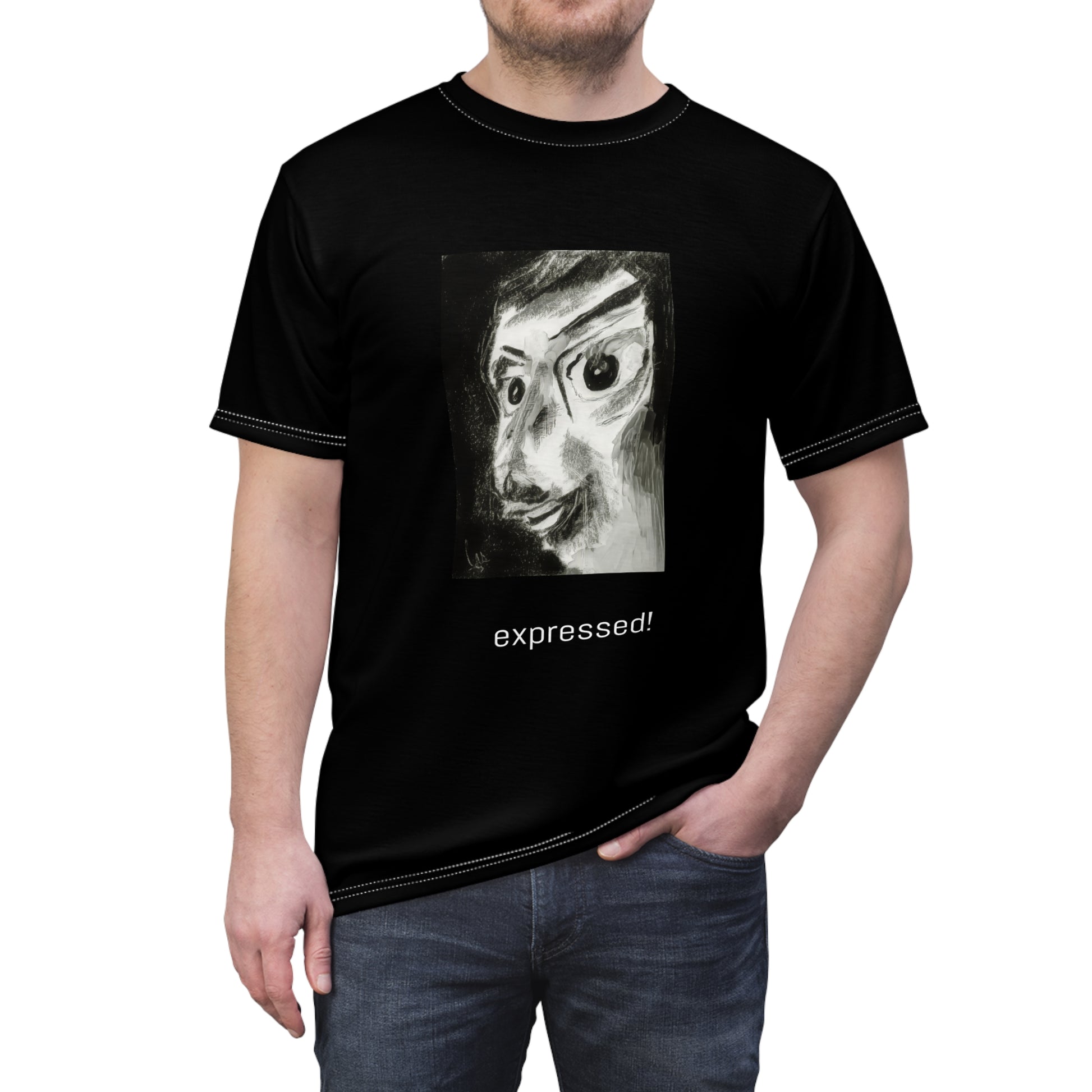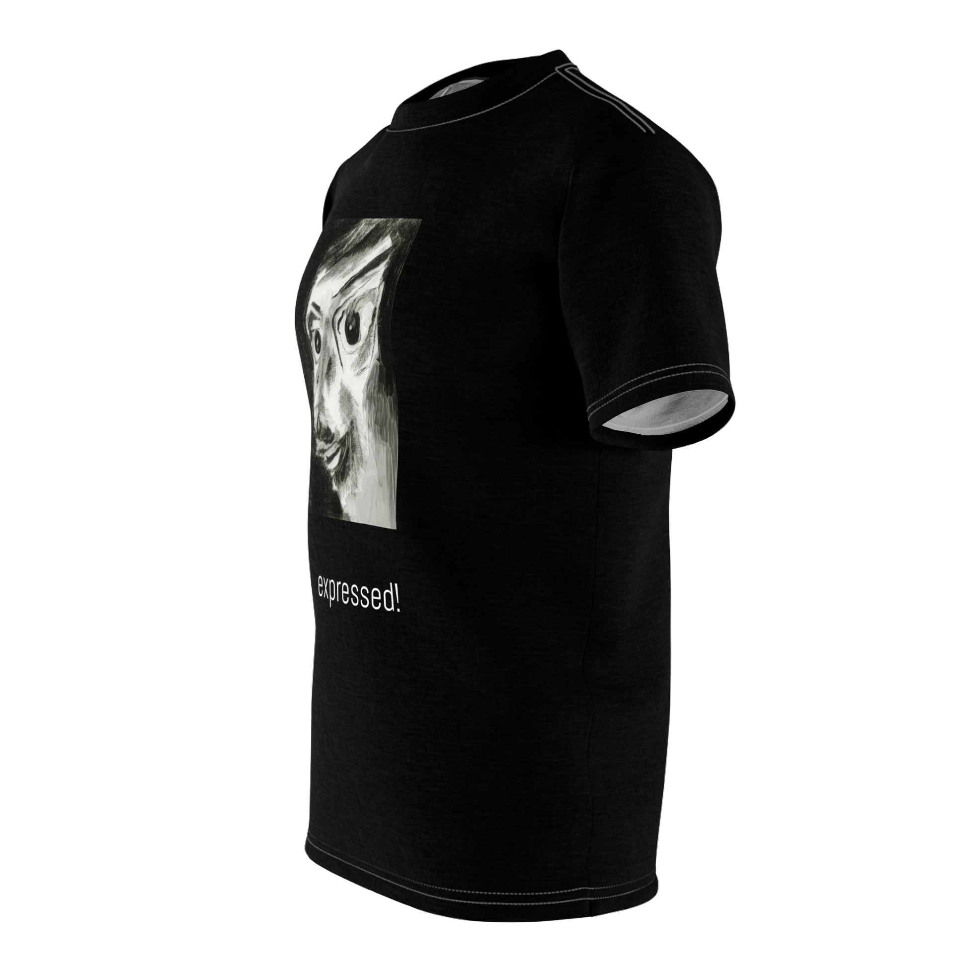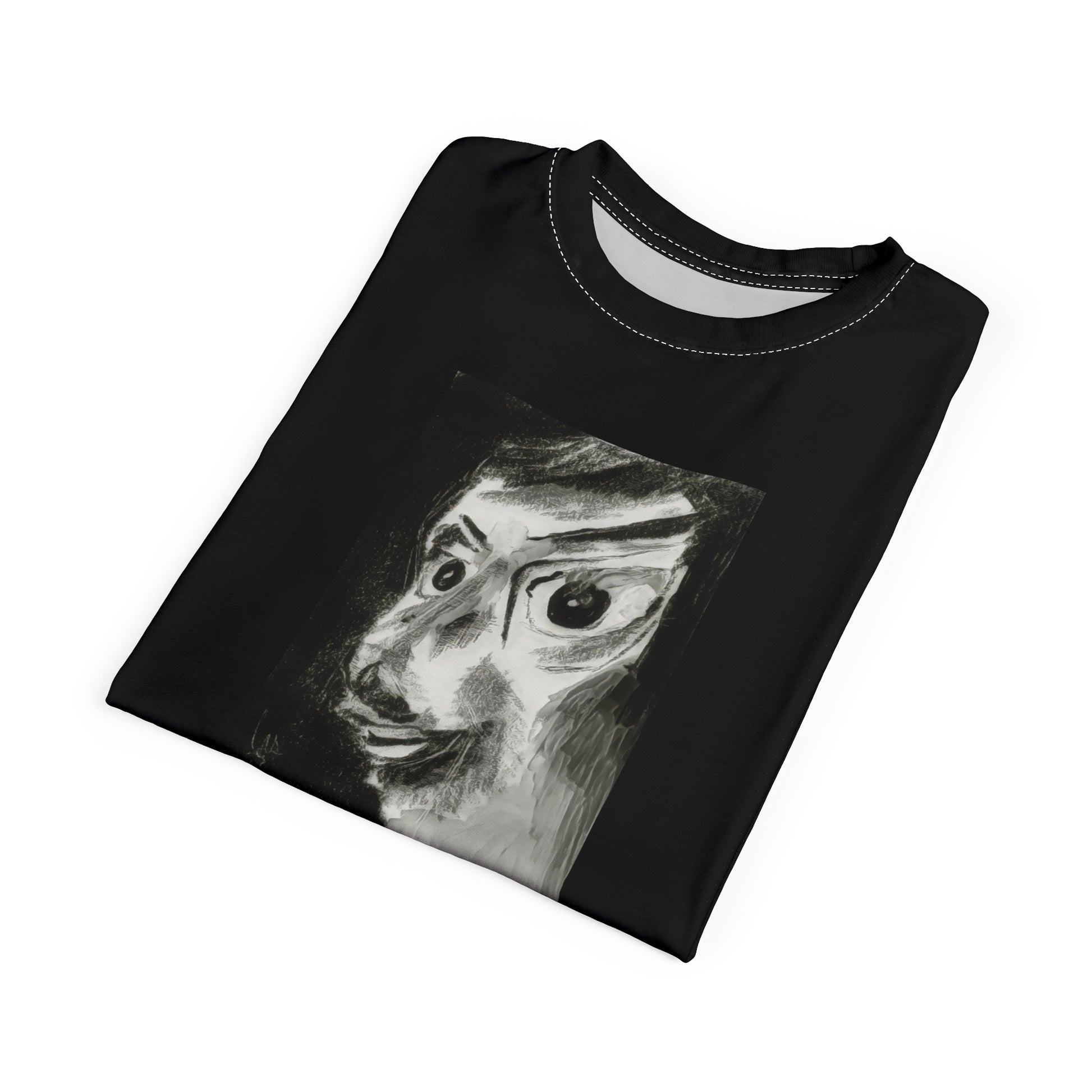 Charcoal sketched tee featuring an expressive facial gestures original art print, evoking emotions. Perfect for those who appreciate unique and artistic designs. Ideal for casual wear or as a statement piece. Relevant for birthdays, art lovers, and casual outings.