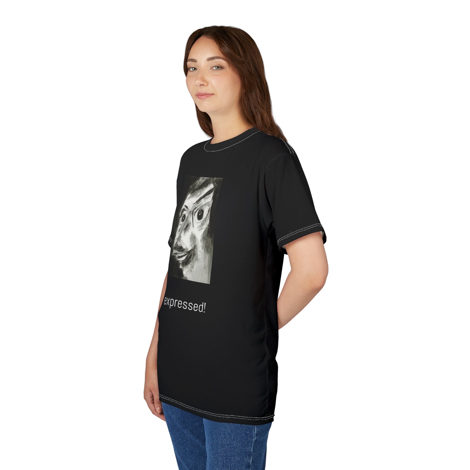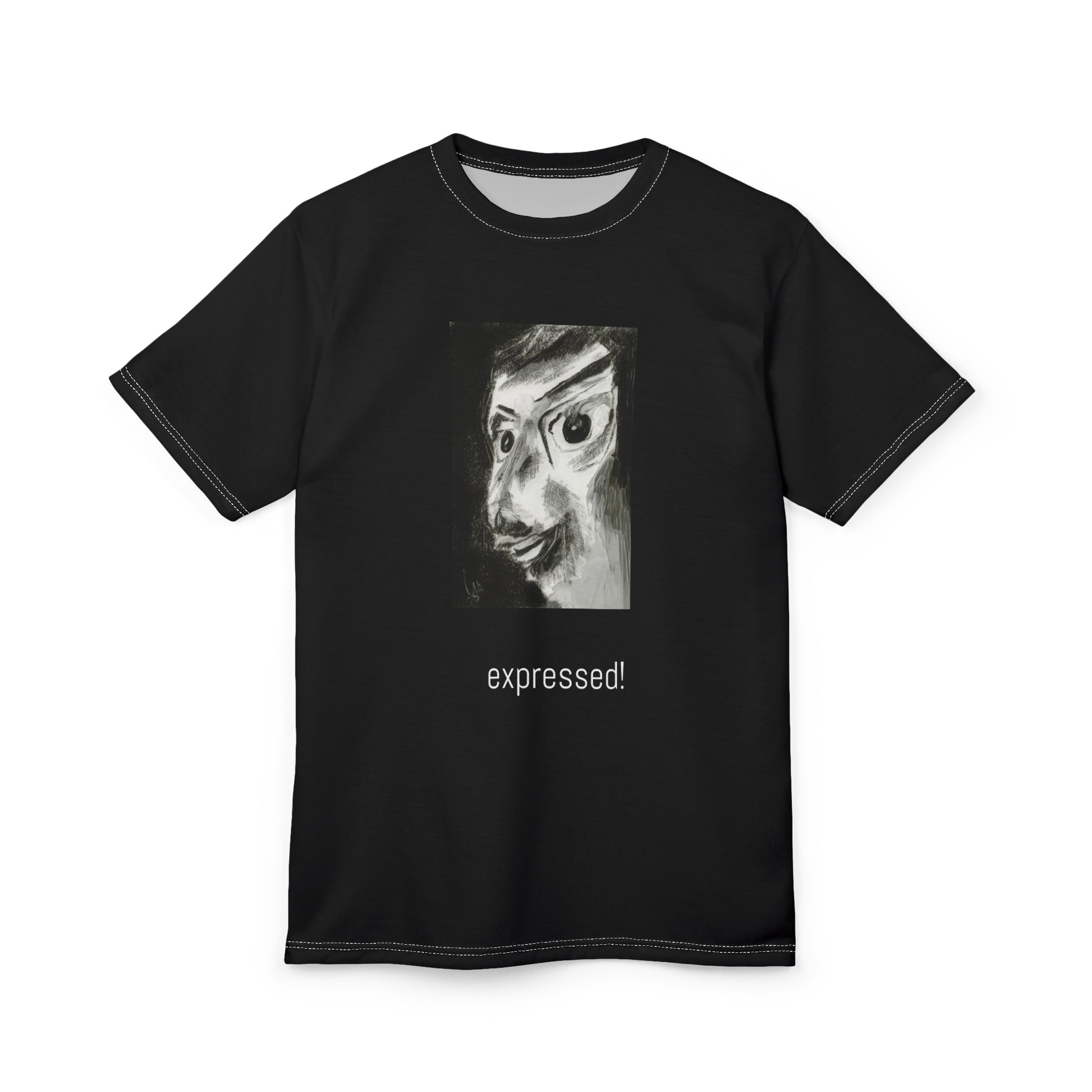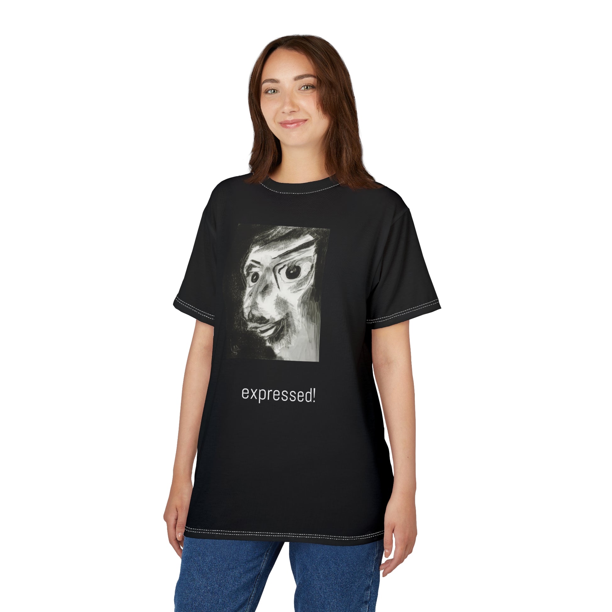 Charcoal sketched tee featuring an expressive facial gestures original art print, evoking emotions. Perfect for those who appreciate unique and artistic designs. Ideal for casual wear or as a statement piece. Relevant for birthdays, art lovers, and casual outings.