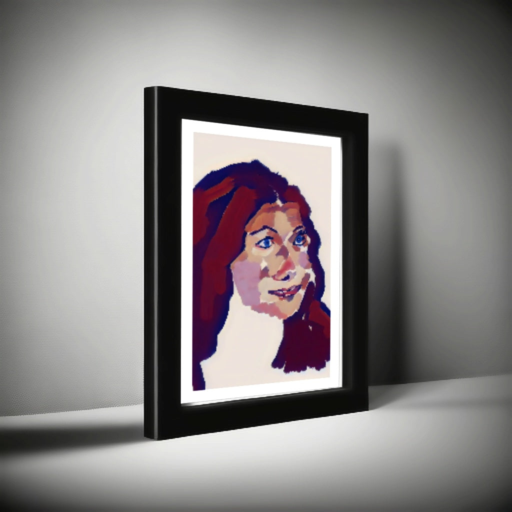 Brighten your home with our stunning Framed Poster featuring a portrait of a smiling, vibrant woman. This beautiful illustration is designed to captivate and inspire, making it a perfect addition to your living room, study desk, or any space in need of a pop of color.
