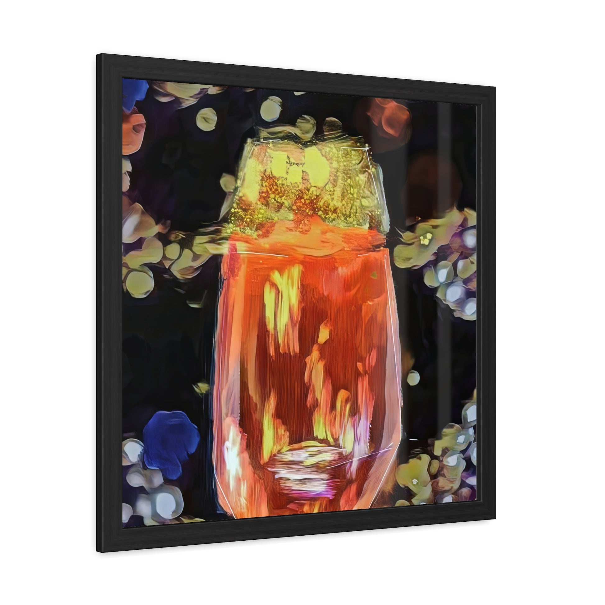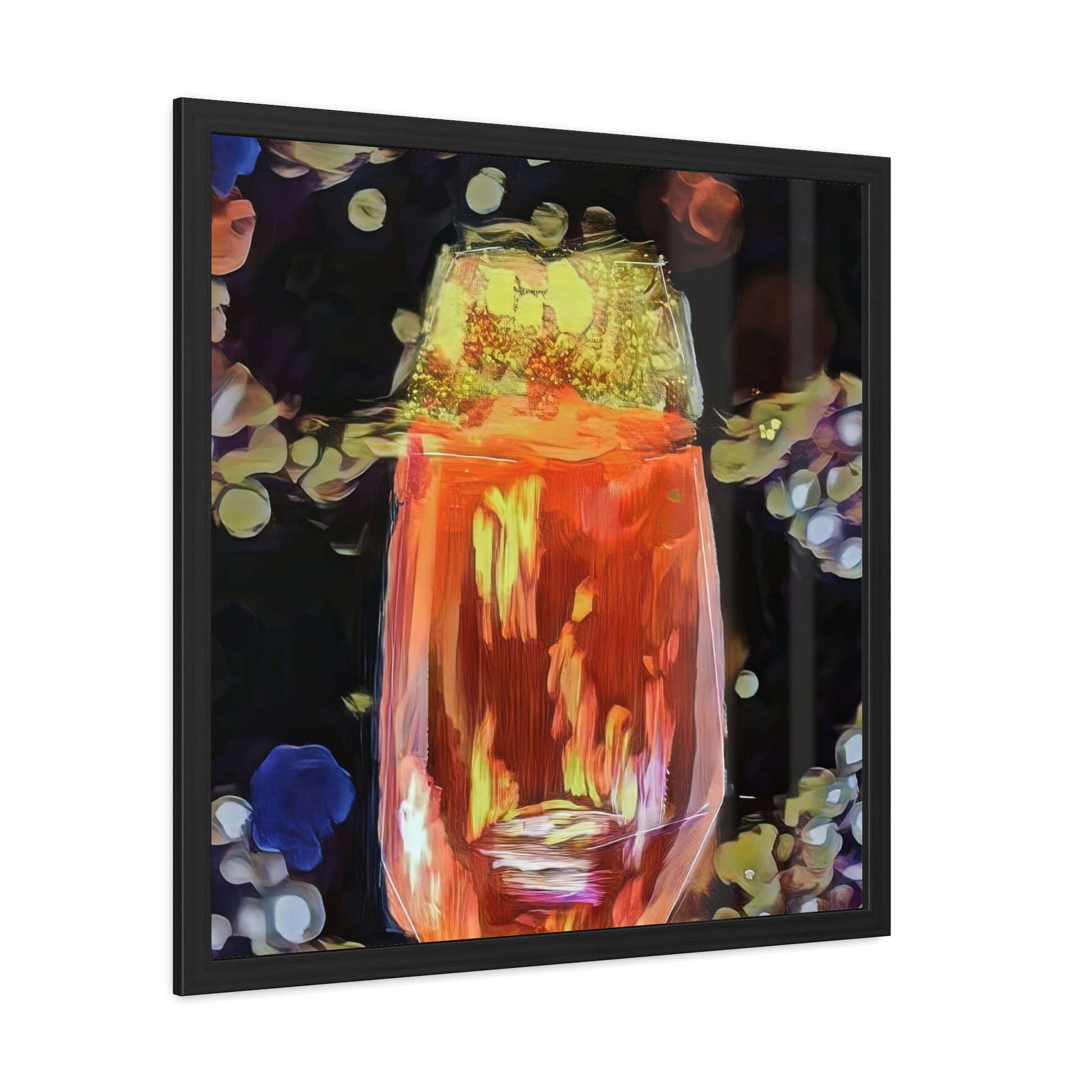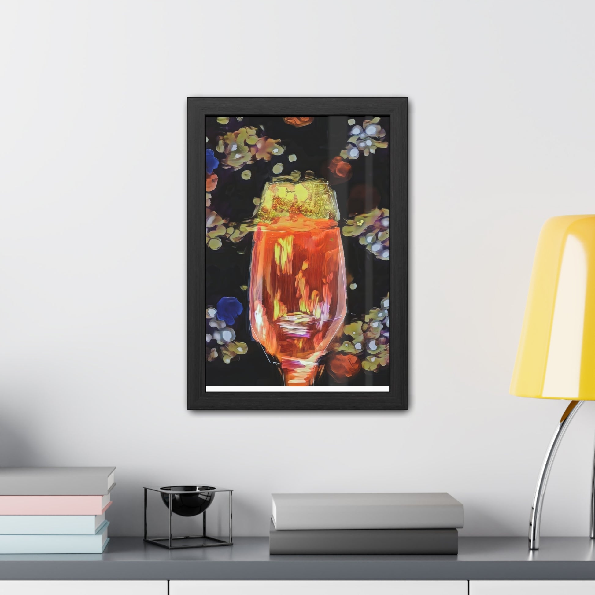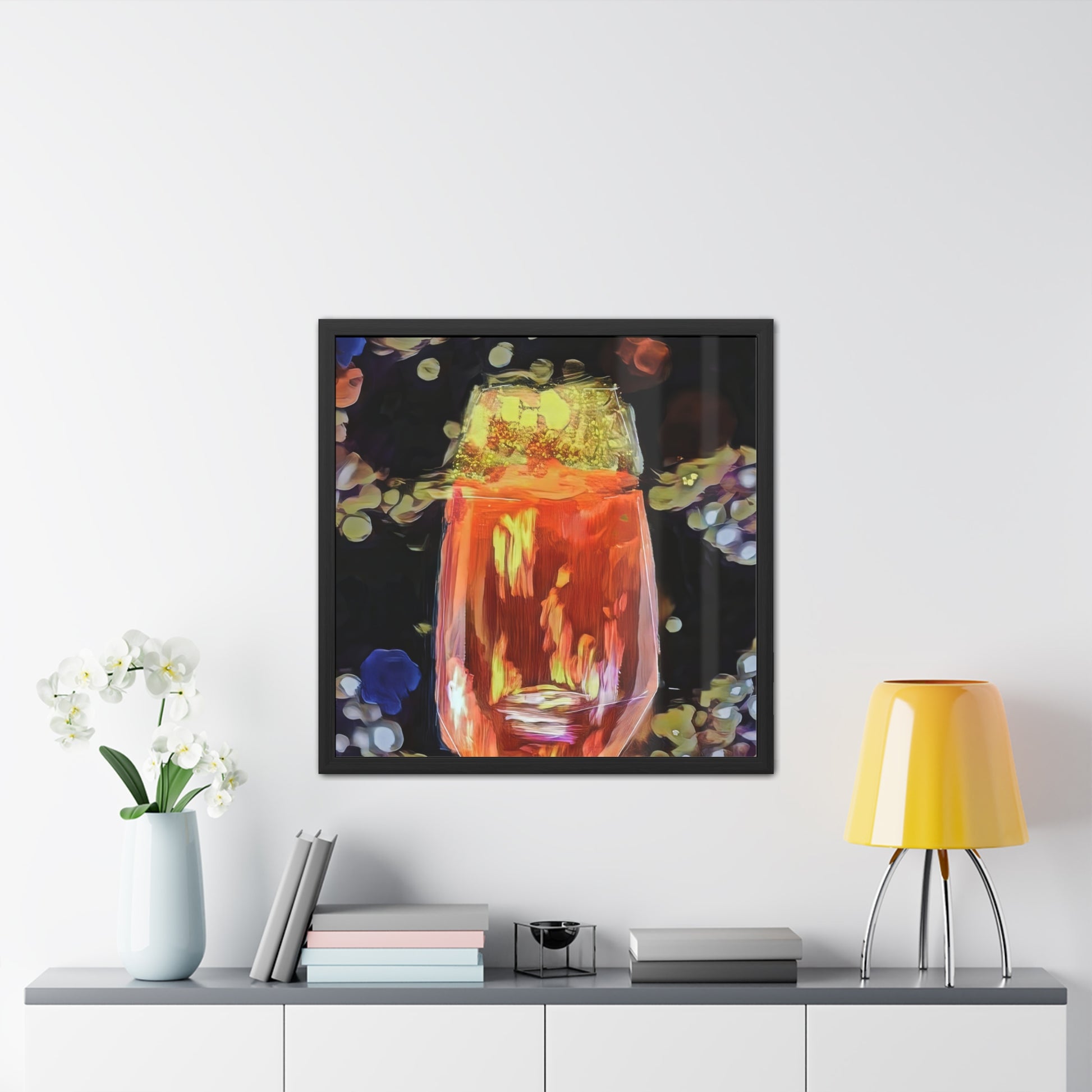Vibrant wine glass painting with a bokeh backdrop effect, perfect for adding a pop of color to your walls. This framed poster is ideal for art enthusiasts and wine lovers, creating a modern and stylish atmosphere in any room. Great for home decor, gifting, birthdays, celebrations, and special occasions.