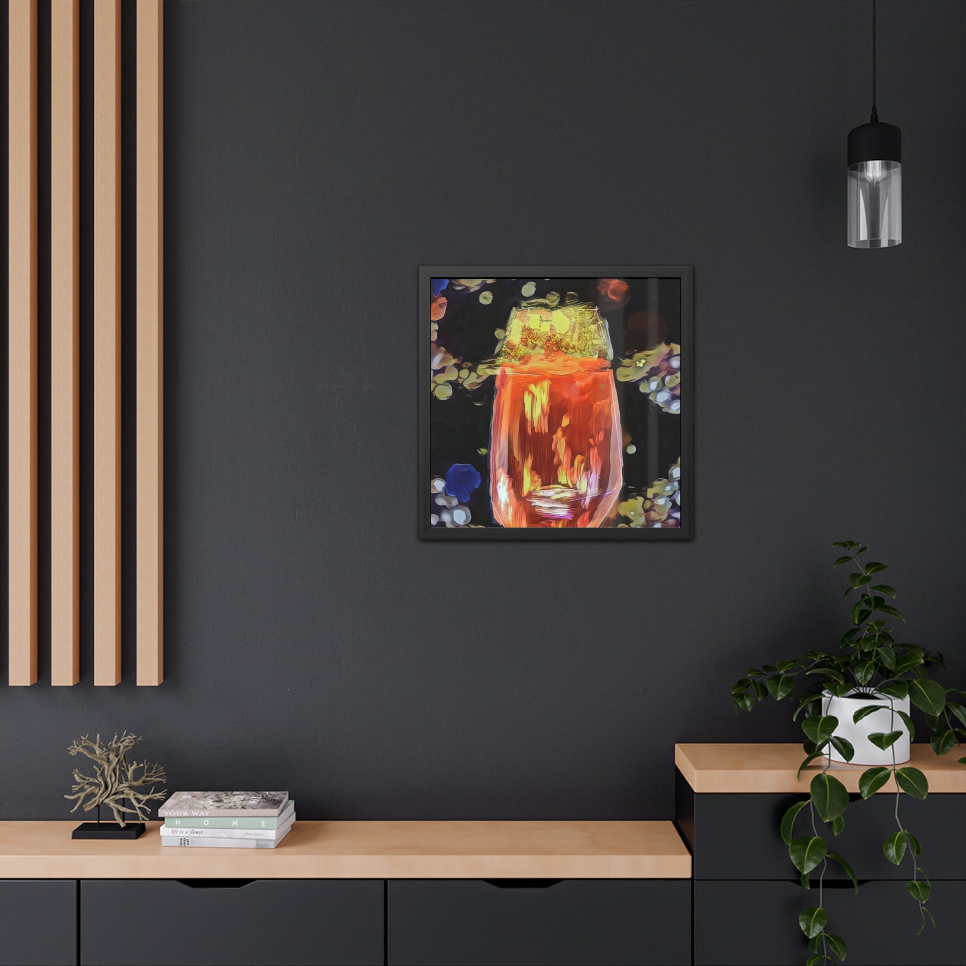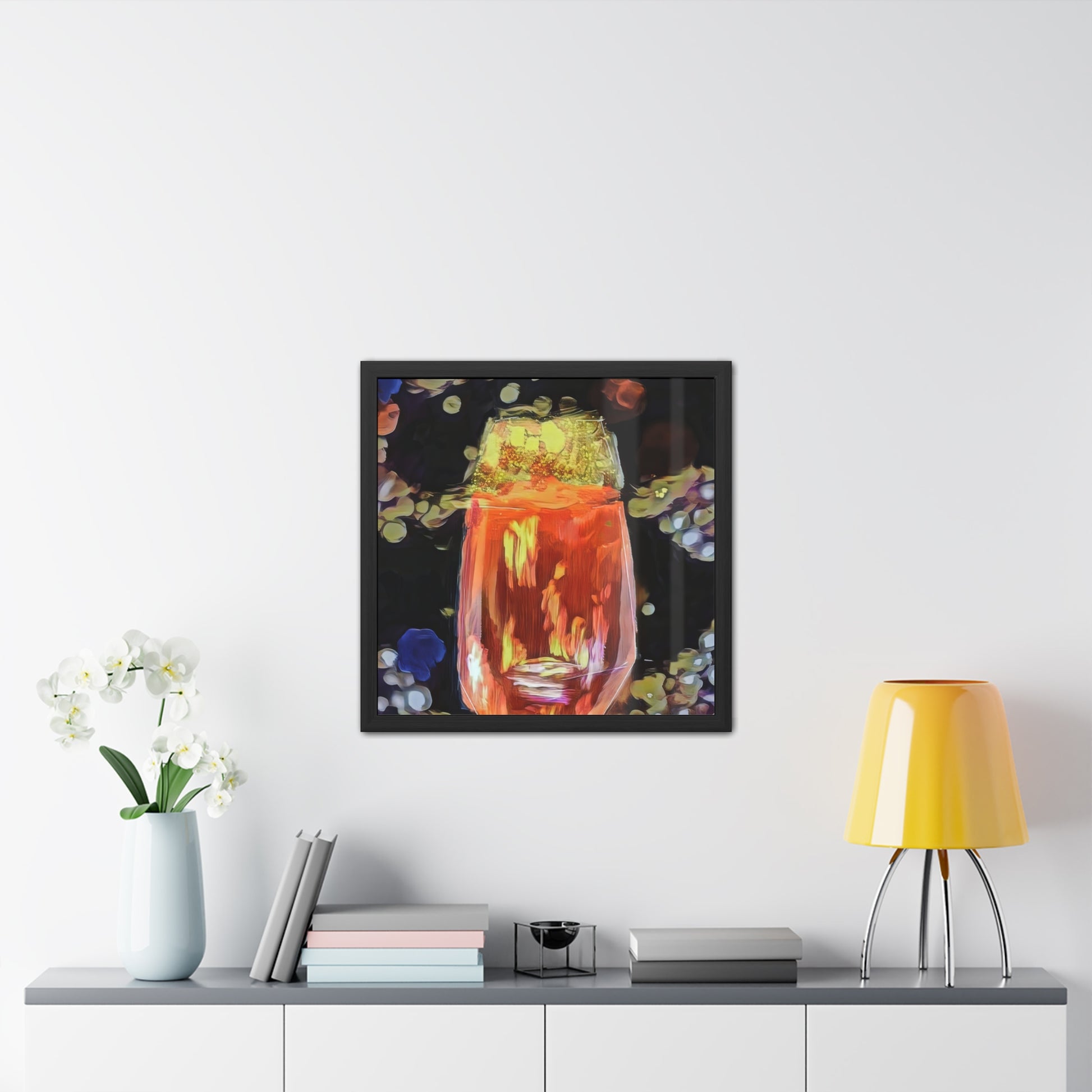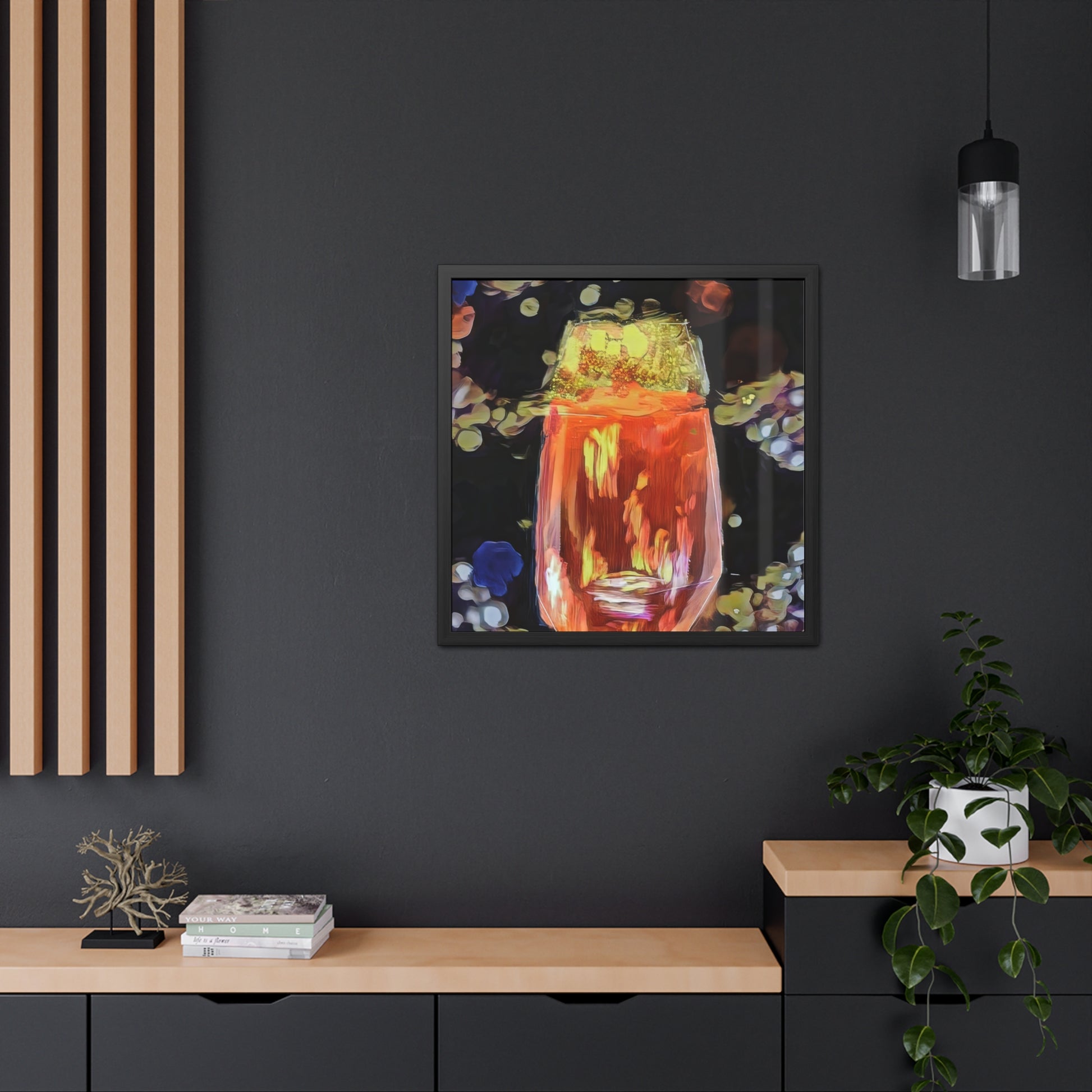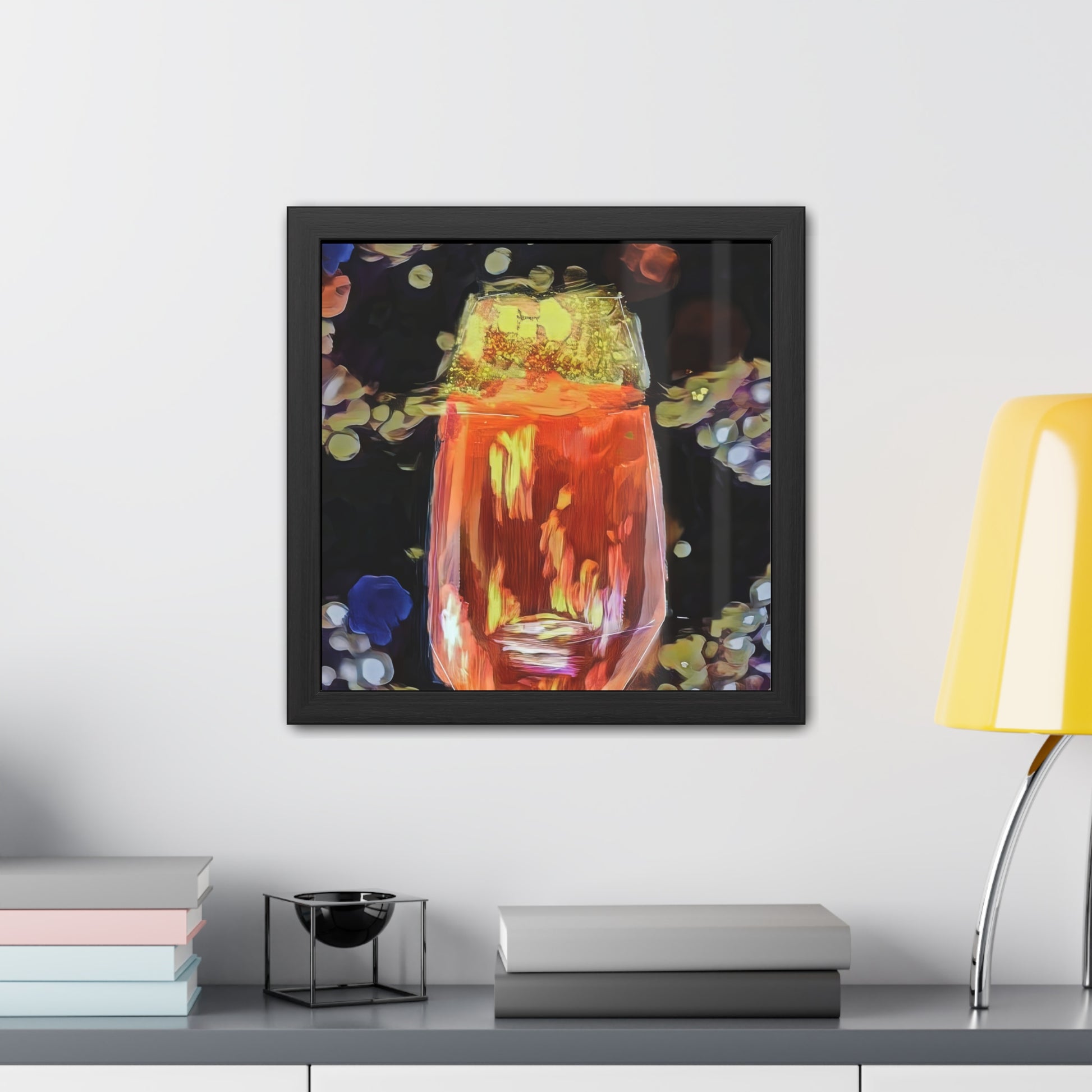 Vibrant wine glass painting with a bokeh backdrop effect, perfect for adding a pop of color to your walls. This framed poster is ideal for art enthusiasts and wine lovers, creating a modern and stylish atmosphere in any room. Great for home decor, gifting, birthdays, celebrations, and special occasions.